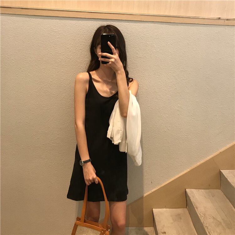 スプリングサマースリムショートスカート ルーズソリッド カラーVネックドレス 春物 夏物 ソリッドカラー 1号婦人63531347430