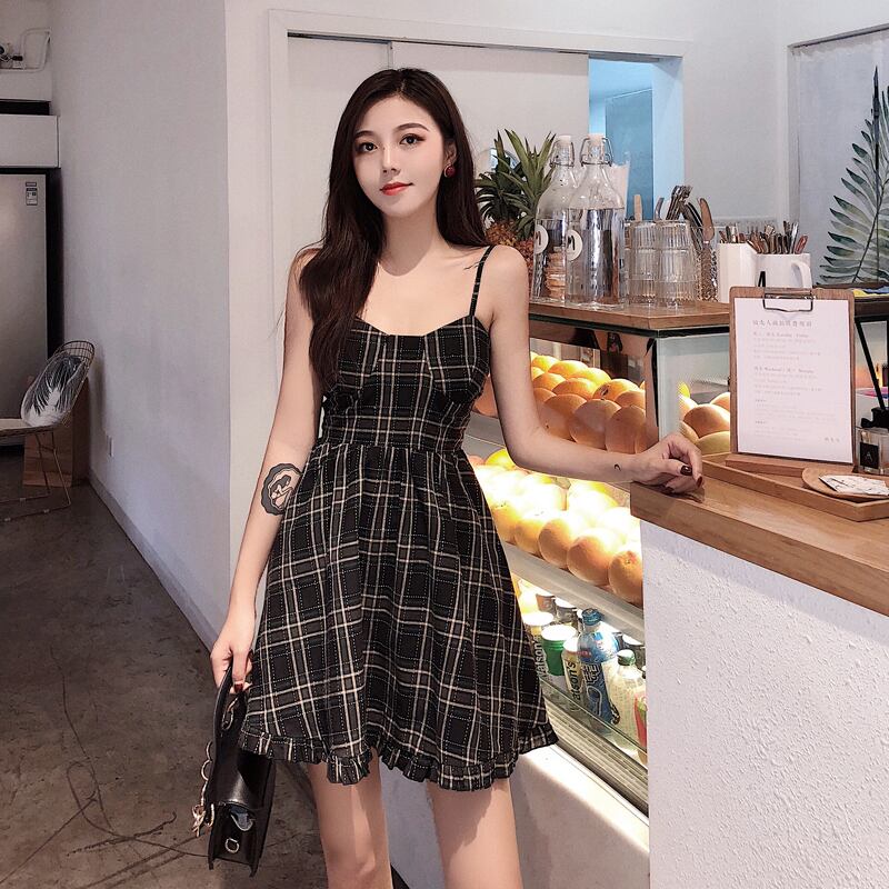 ドレス スプリングルーズスタンダード格子柄スカート ハイウェストウェストスリムAラインカジュアル レトロ 春物 1号婦人60438631037