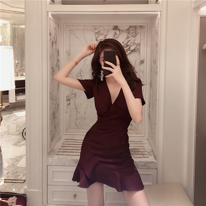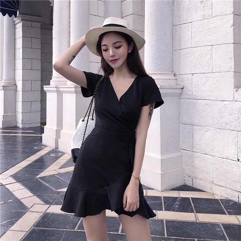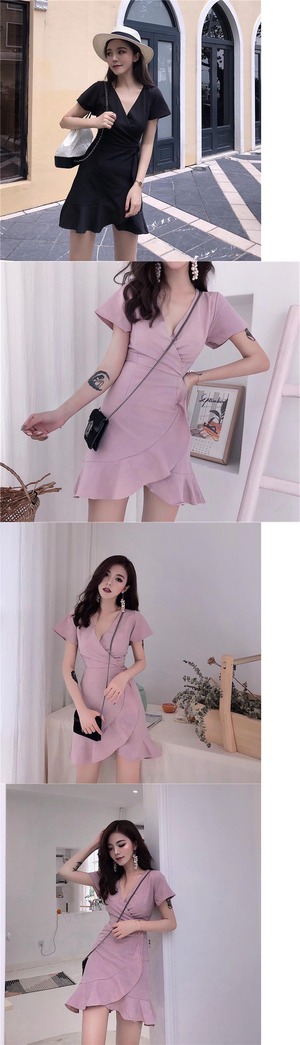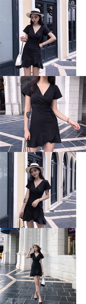 ウェストドレス スプリングVネックブラックショートスカート 春物 1号婦人95610328341