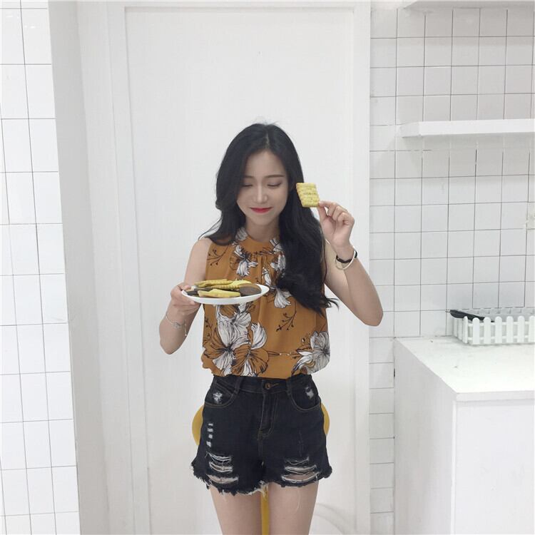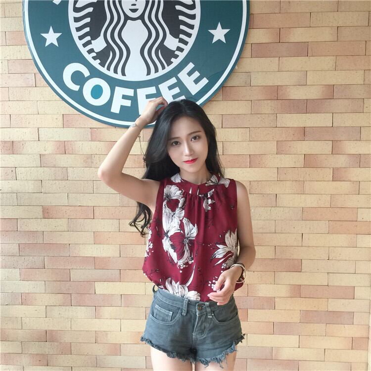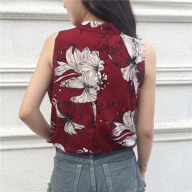 シフォンシャツ スプリングスタイルスタンダードプリントノースリーブトップス レトロ 春物 1号婦人78622772958