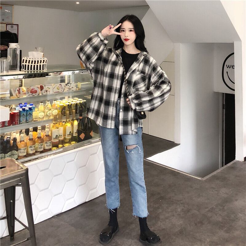 オータムシャツ スタンダード格子柄ジャケット トップス ロング レトロ 秋物 1号婦人2233349093