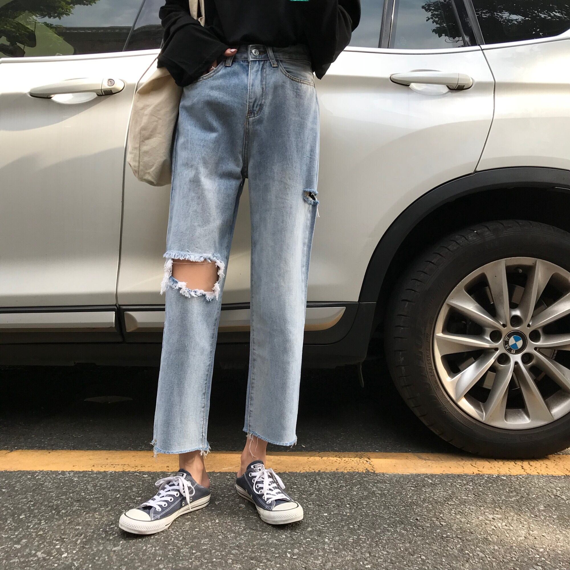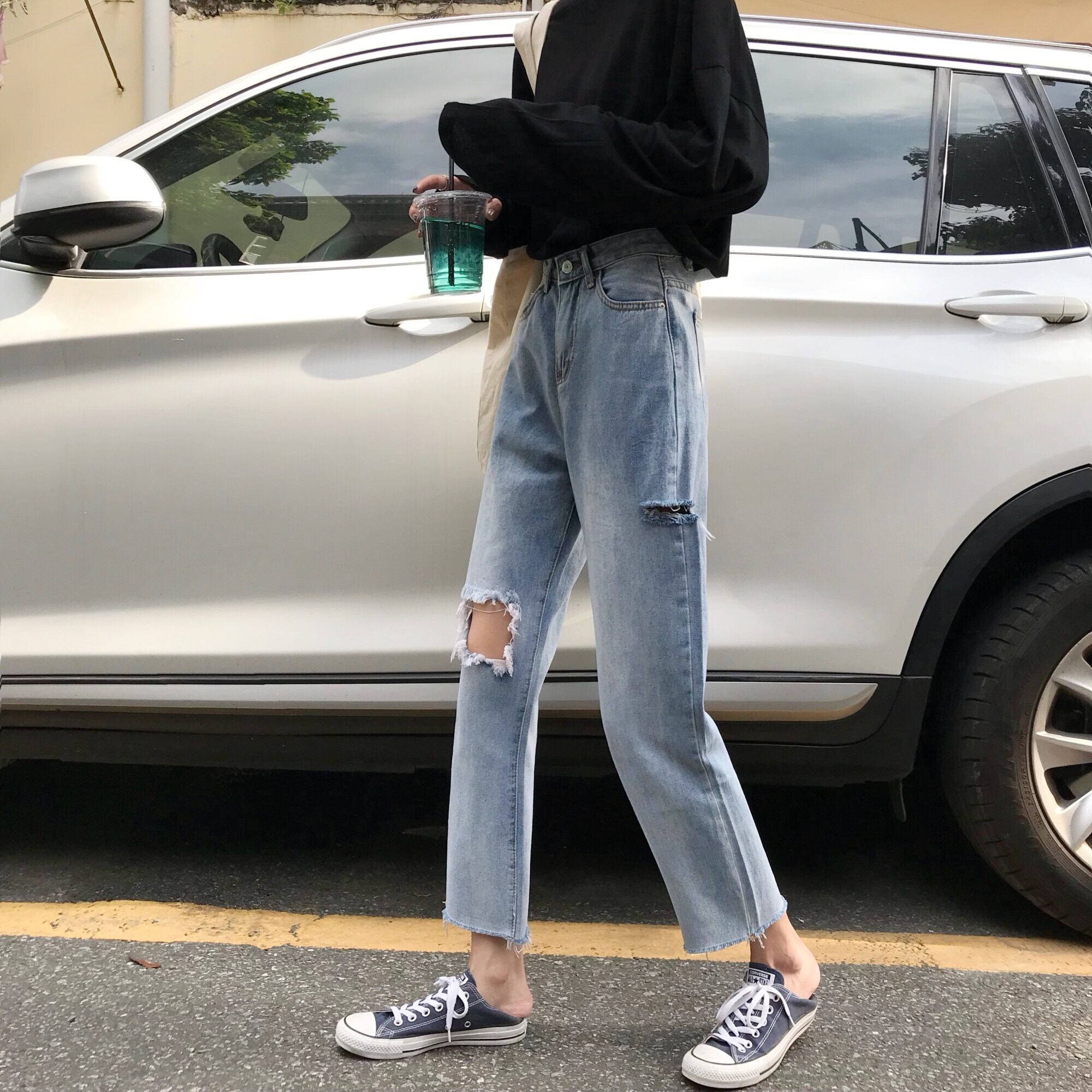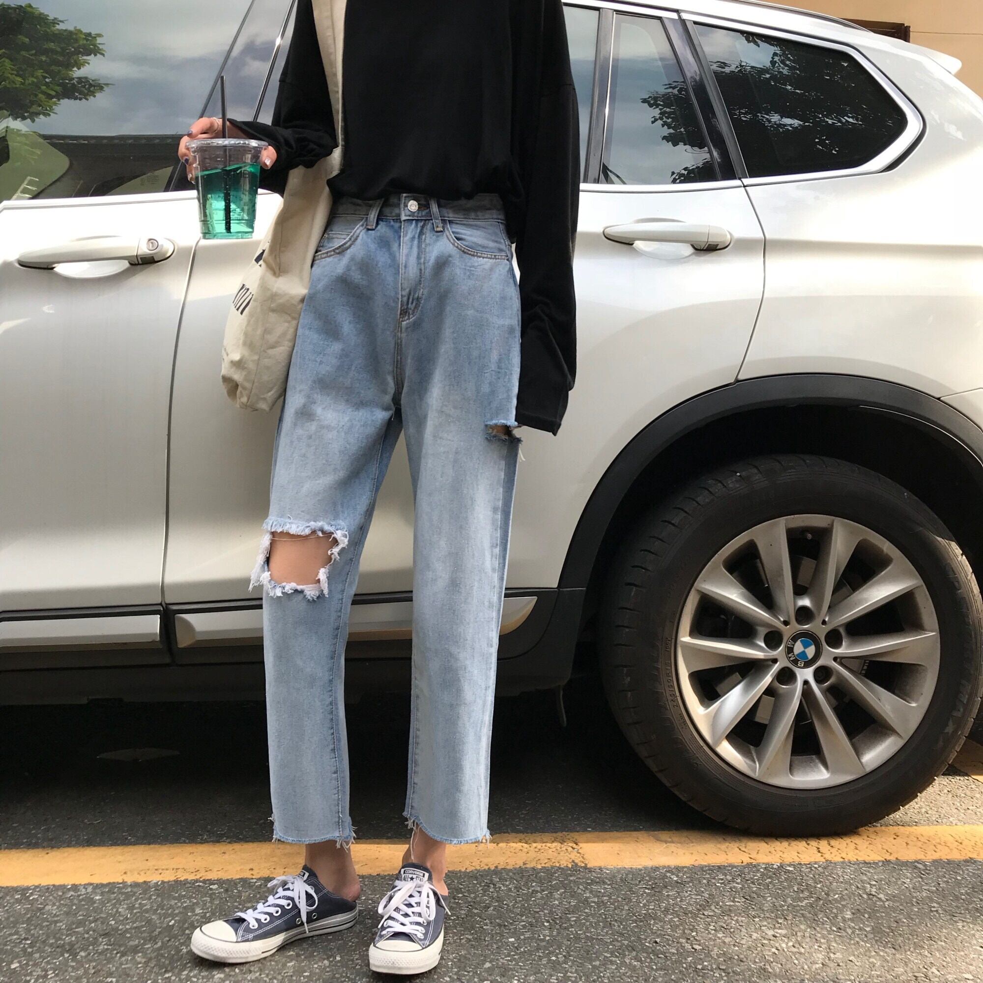 スプリングスタイルルーズスタンダードジーンズ ハイウェストウェストワイドレッグパンツ クロップド レトロ 春物 ワイドパンツ 1号婦人74707183610