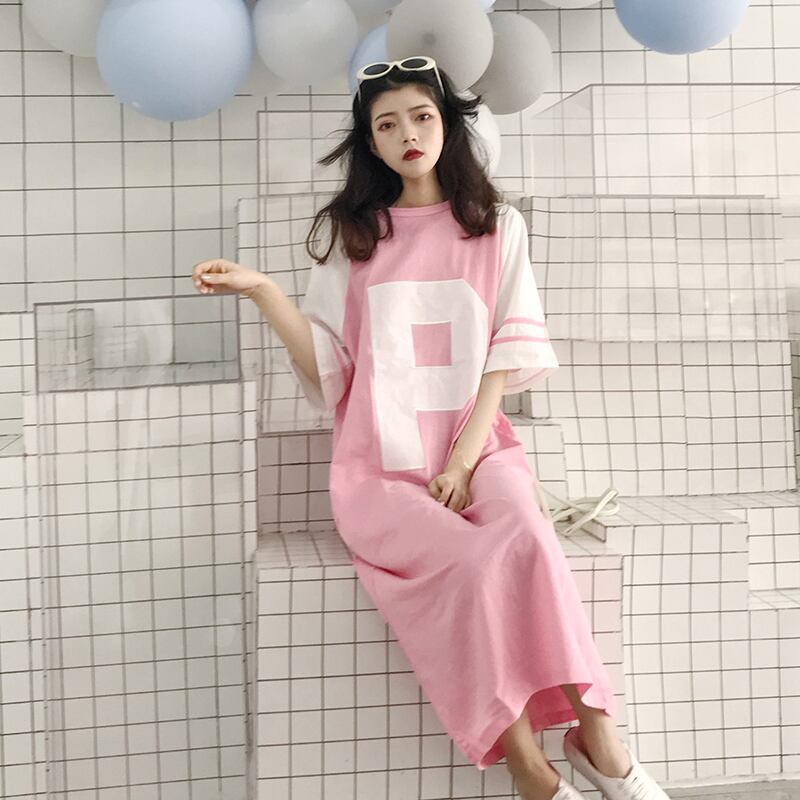 サマードレス レッドTシャツ スカート ルーズロング 夏物 1号婦人48934431396