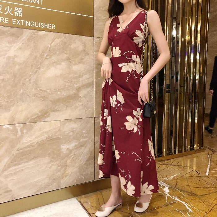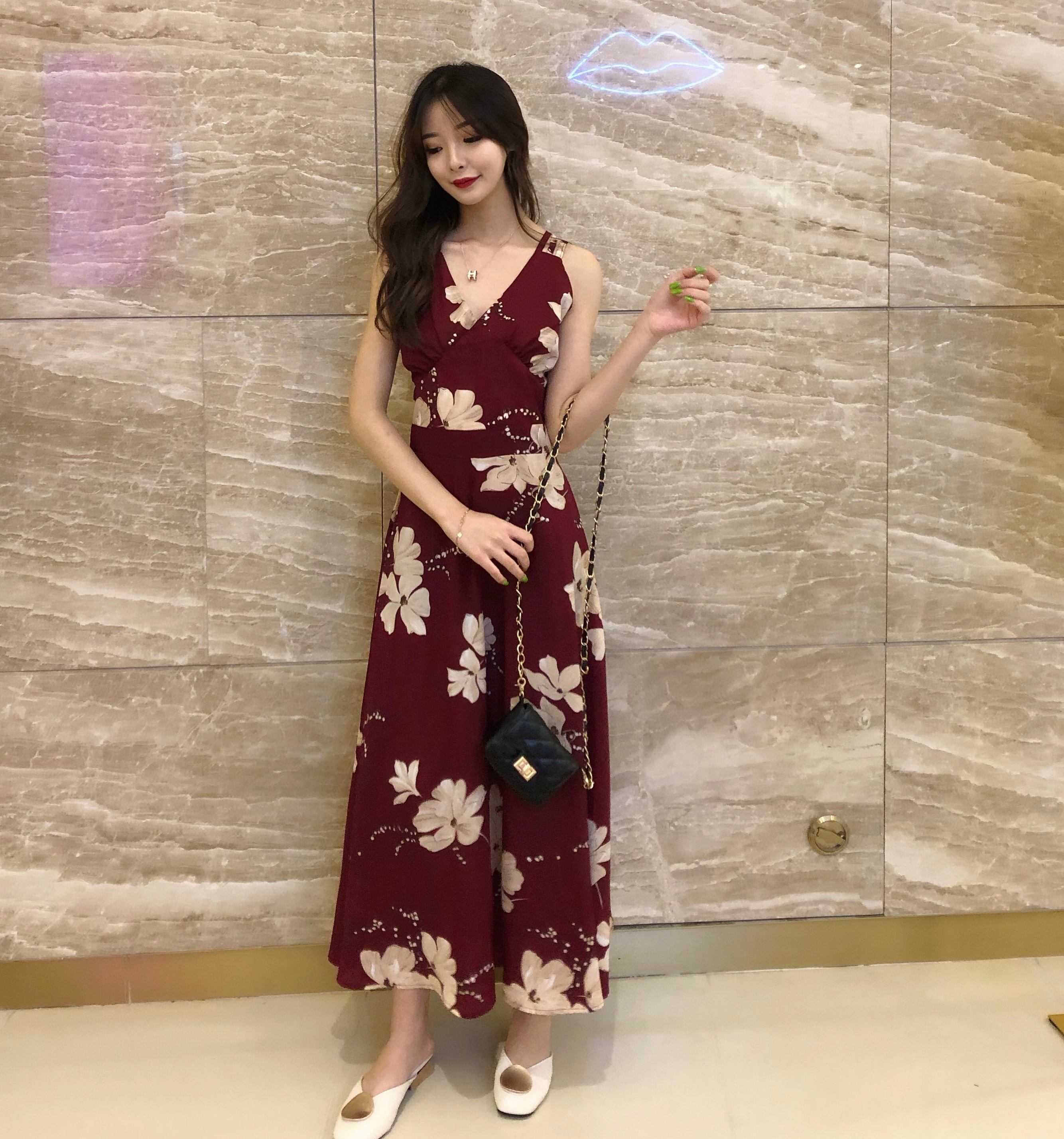 2020年春の新ミドル丈プリントホルターセクシーなサスペンダードレス女性の休日大きなスイングビーチスカート 1号婦人49948023993