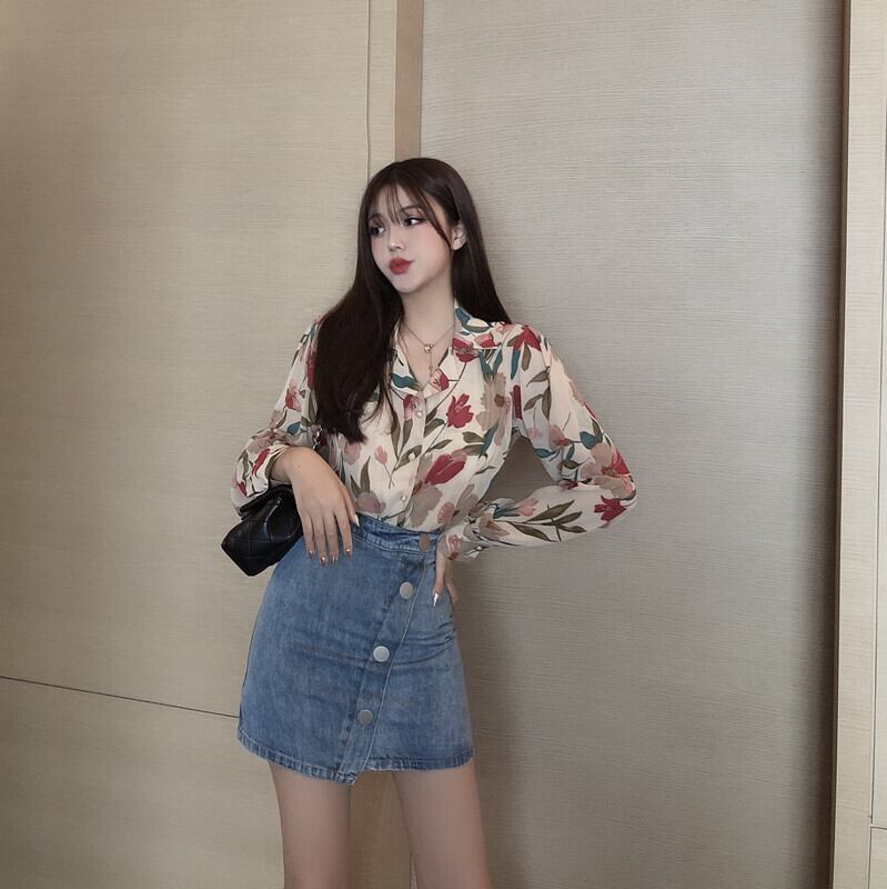 春秋レディースシフォンシャツ気質プリントシャツレトロ香港フレーバーシックなフローラルブラウスデザインニッチ 1号婦人40659047582