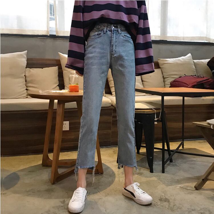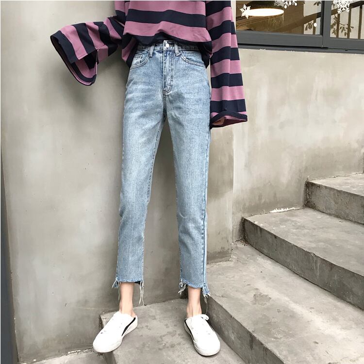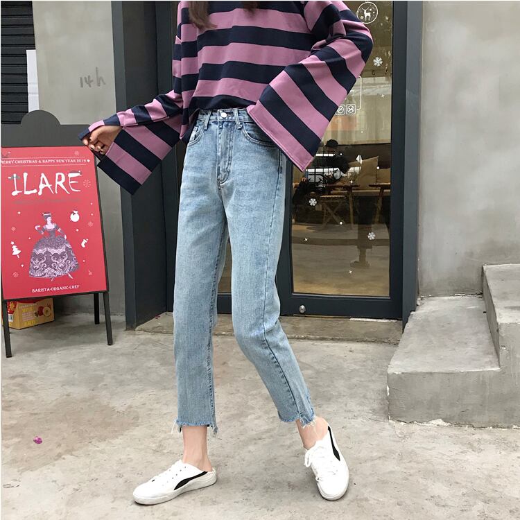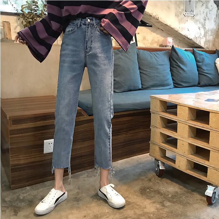 ハイウエストスリムストレートレッグジーンズレディース2020の夏の新バージョン、ルーズでリッピングされたローエッジの9ポイントワイドレッグパンツ 1号婦人19543298175