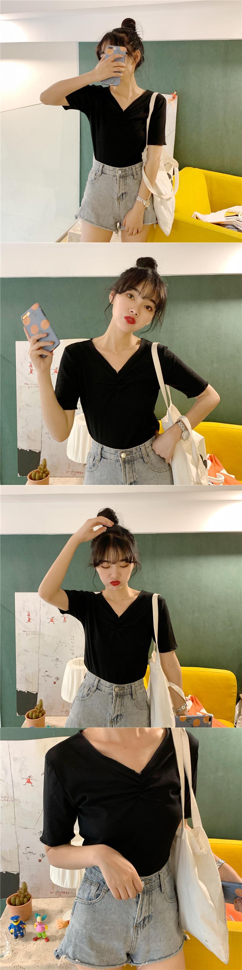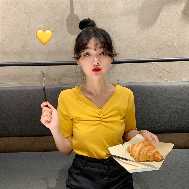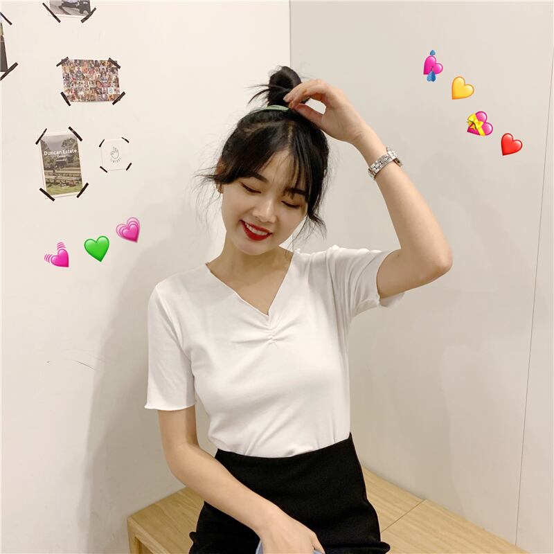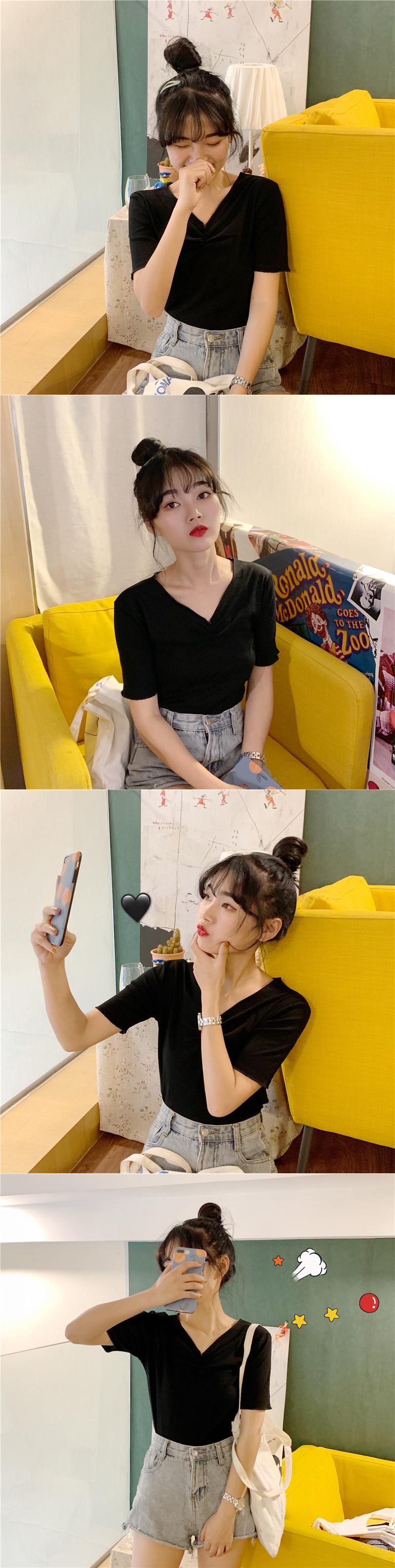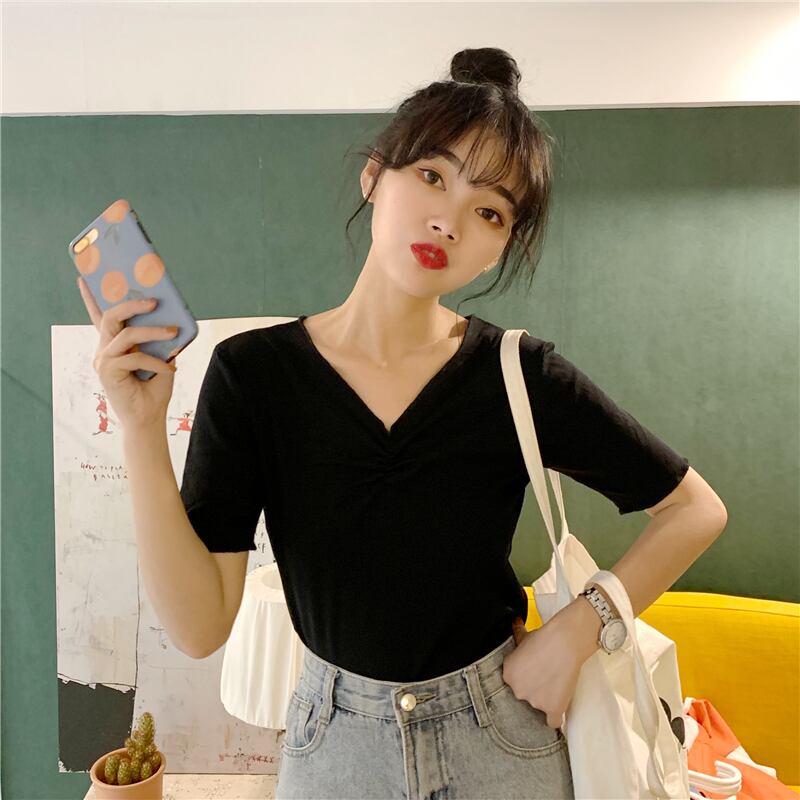 2020年夏の半袖の女性の夏の新しいスタイルのスリムスリムブラックトップネットレッドインスーパーファイヤーVネックTシャツトレンド 1号婦人32155235826