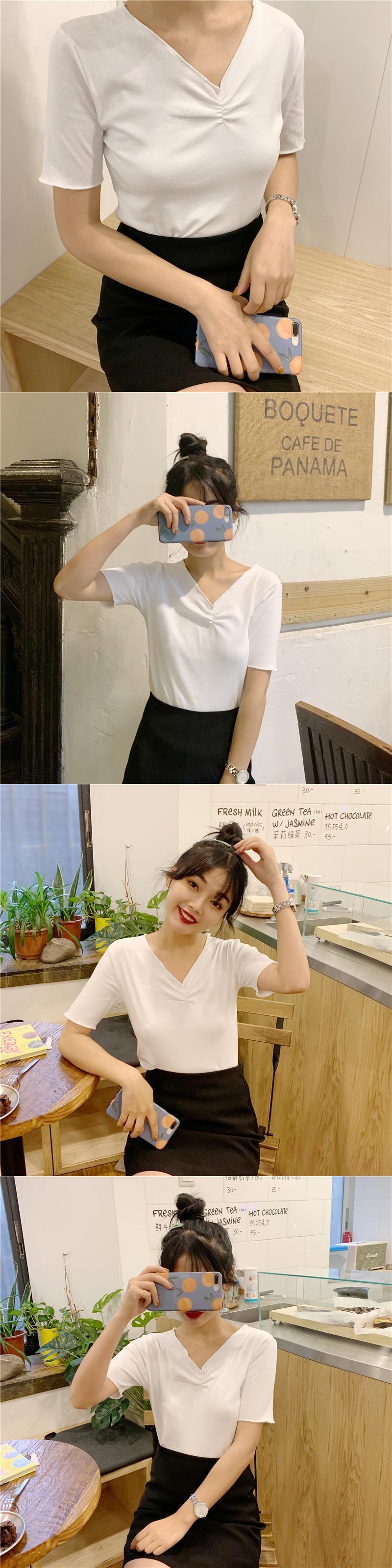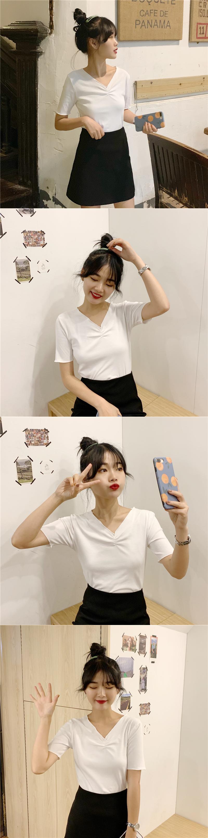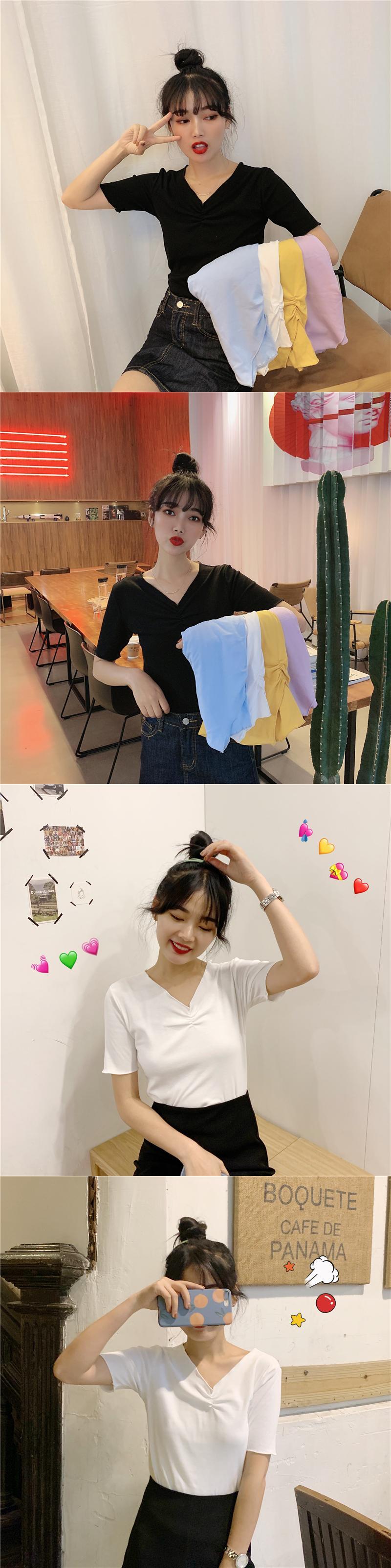 2020年夏の半袖の女性の夏の新しいスタイルのスリムスリムブラックトップネットレッドインスーパーファイヤーVネックTシャツトレンド 1号婦人32155235826