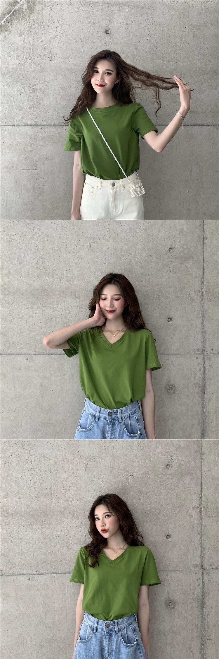 色:アボカドグリーンラウンドネック,グースイエローラウンドネック,白い丸首,ブラックラウンドネック,ブルーラウンドネック,赤レンガの丸首,アボカドグリーンVネック,グースイエローのVネック,ホワイトVネック,ブラックVネック,青いvネック,赤レンガのVネック