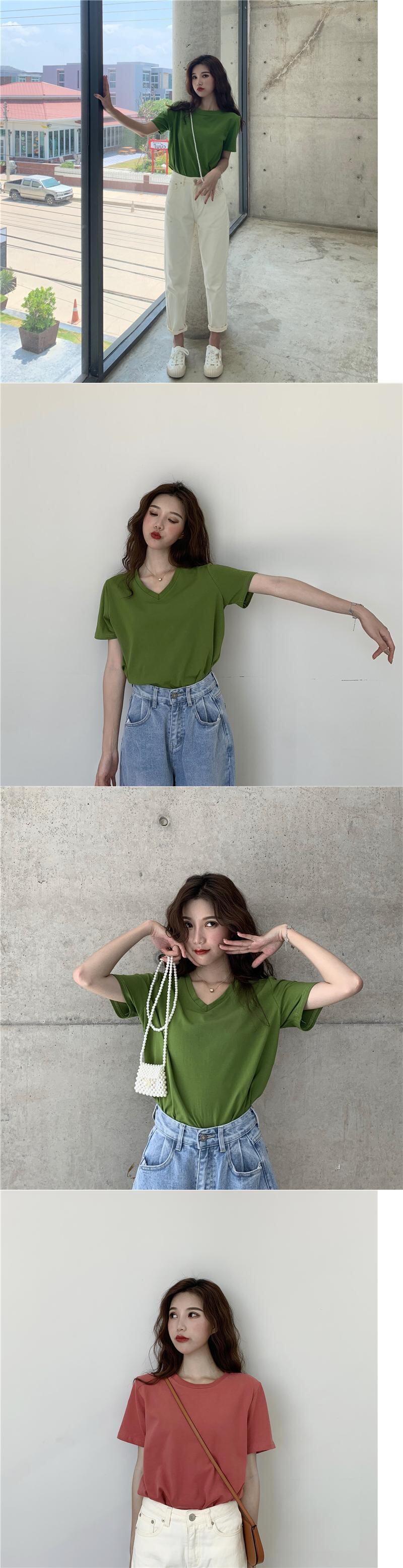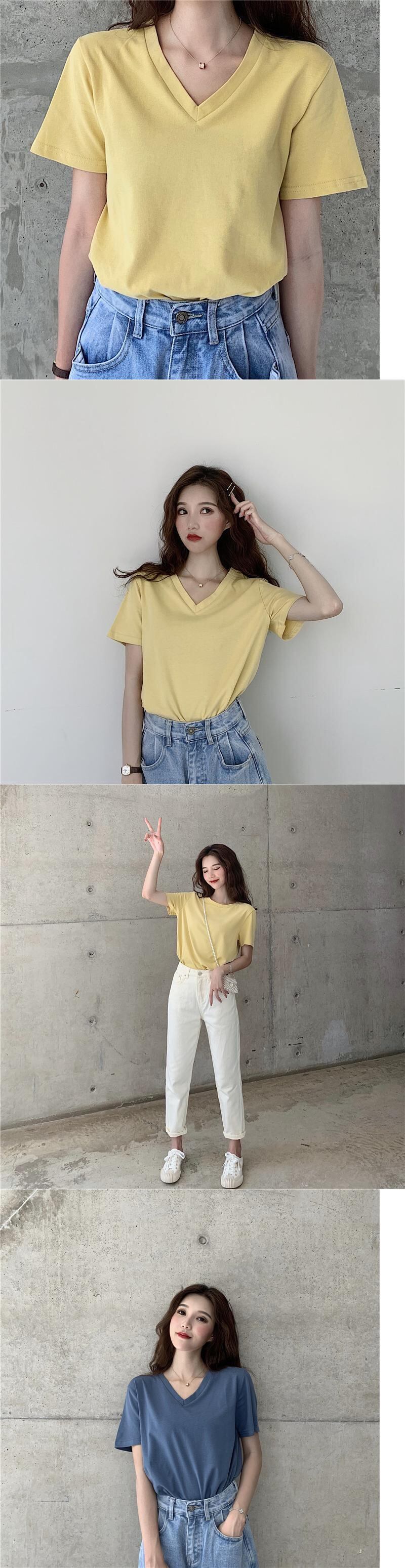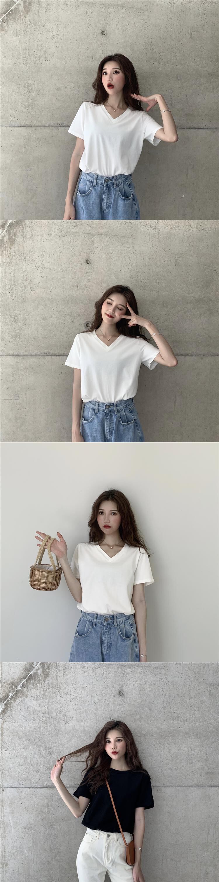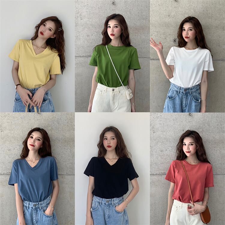 2020年夏の新バージョンins学生香港スタイルのボトムスシャツウエスタンスタイルのルーズトップVネック半袖Tシャツの女性 1号婦人4552622887