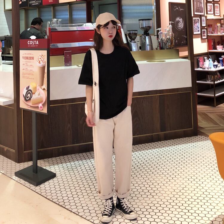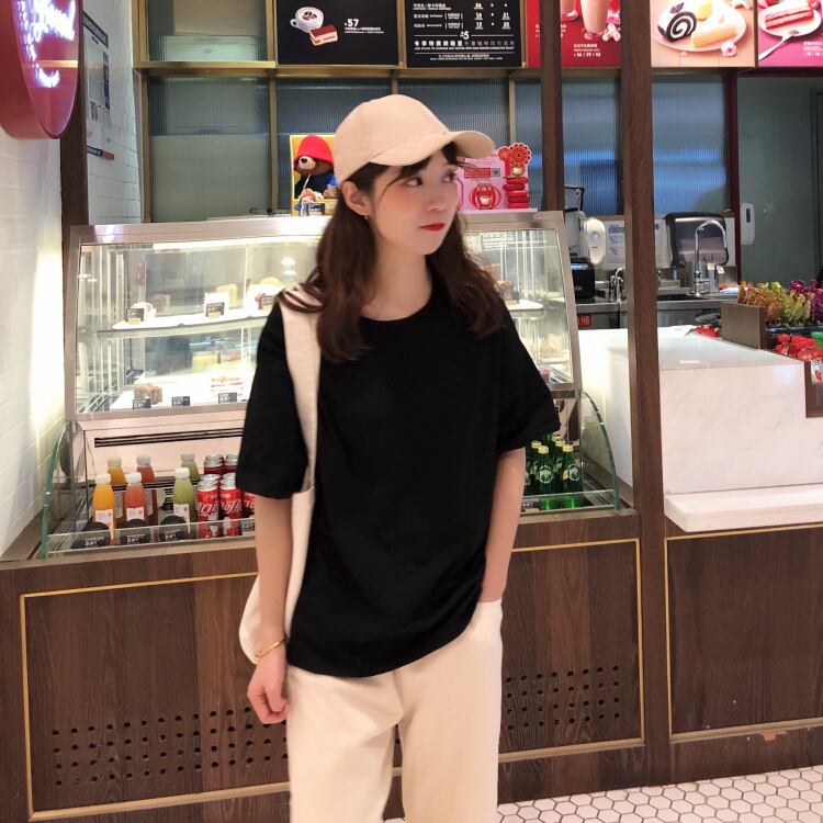 白いブラウス女性の春2020新しいバージョンの緩い野生のラウンドネック半袖Tシャツ学生カジュアルボトムシャツ 1号婦人74761793379
