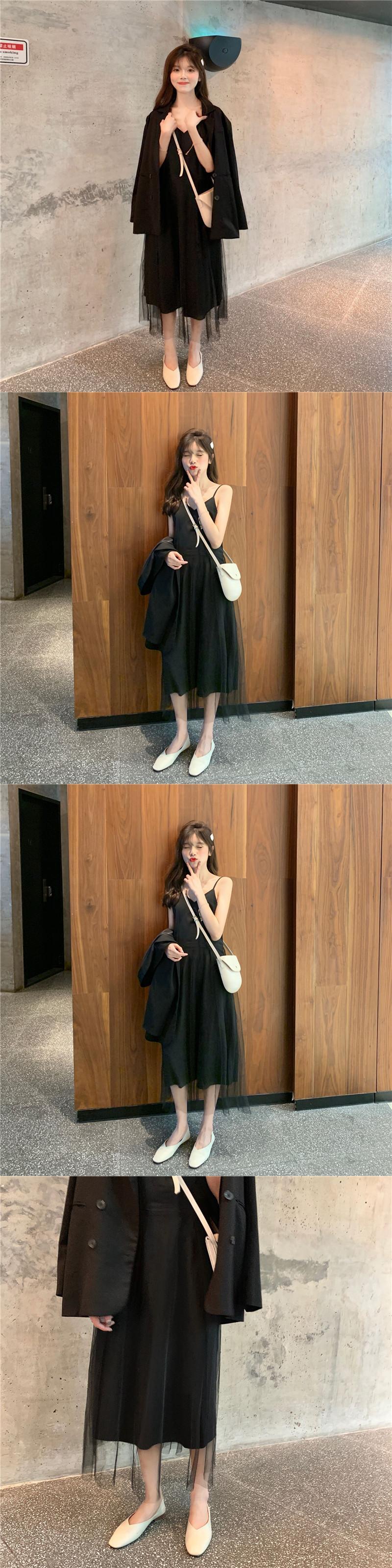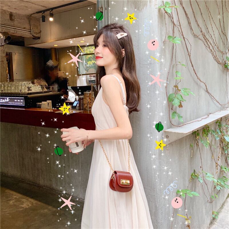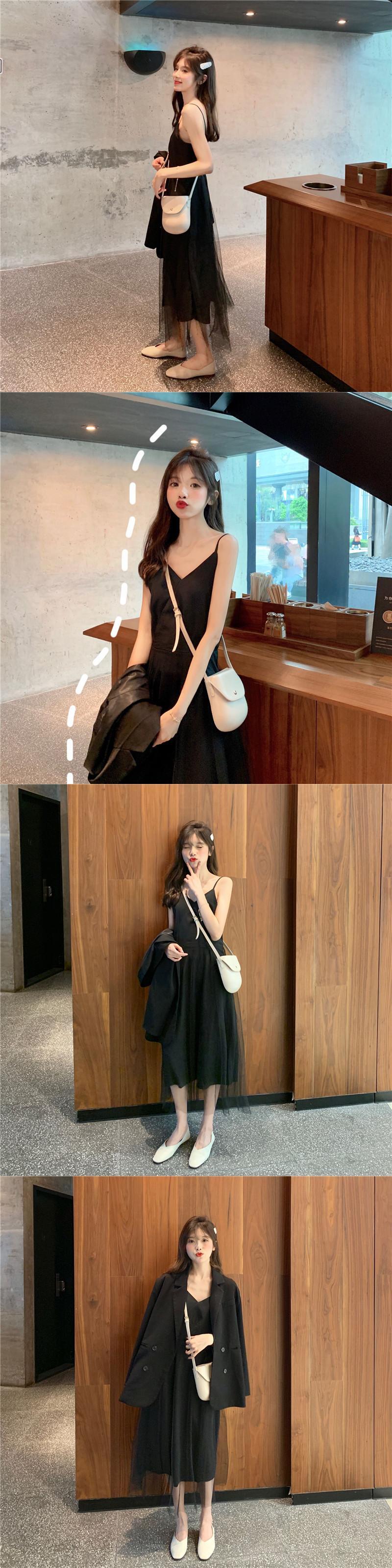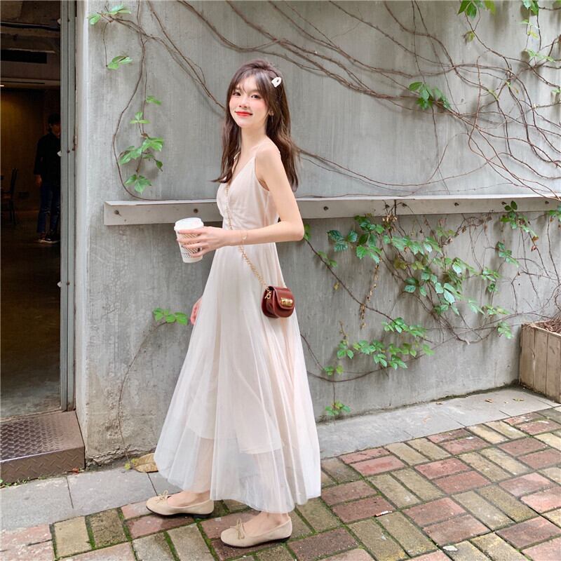 フレンチロングスカート2019夏フレンチニッチメッシュハイウエストVネックウエストサスペンダードレス 1号婦人84535125870