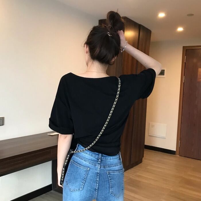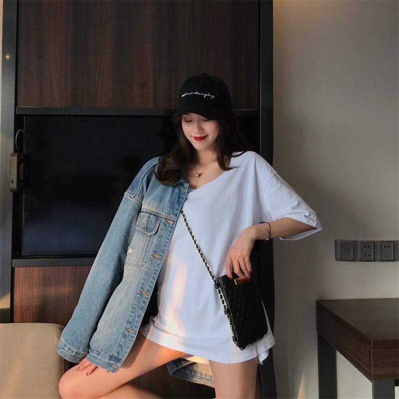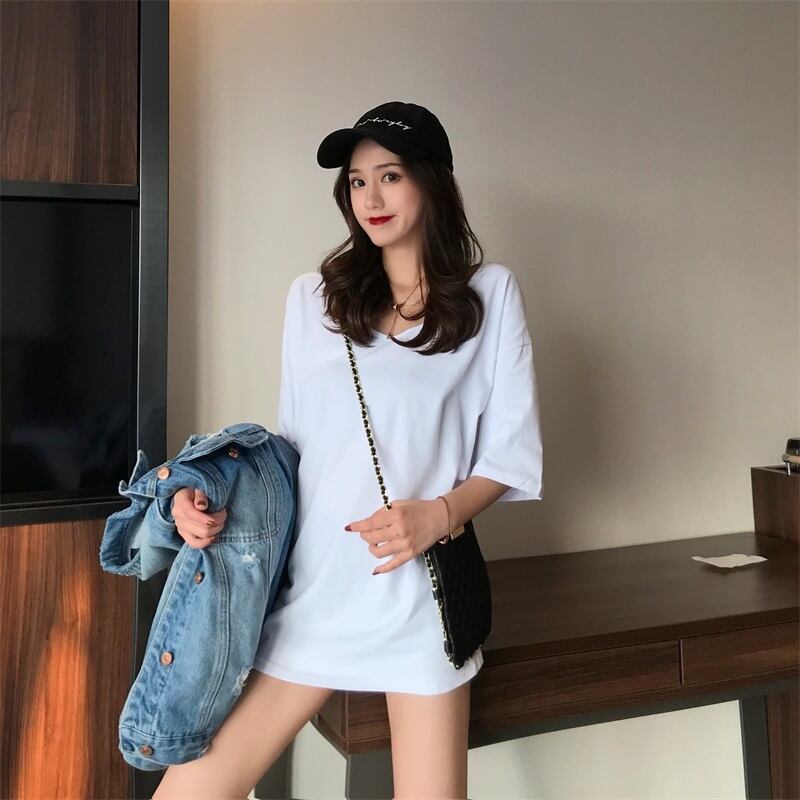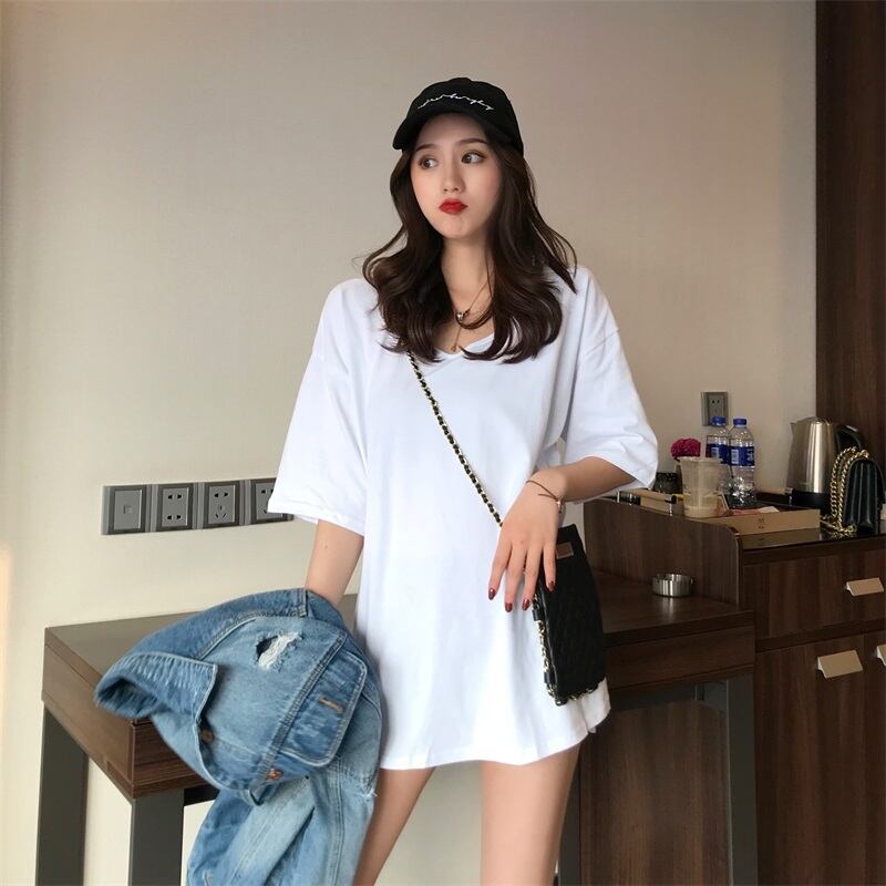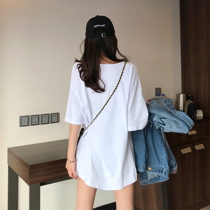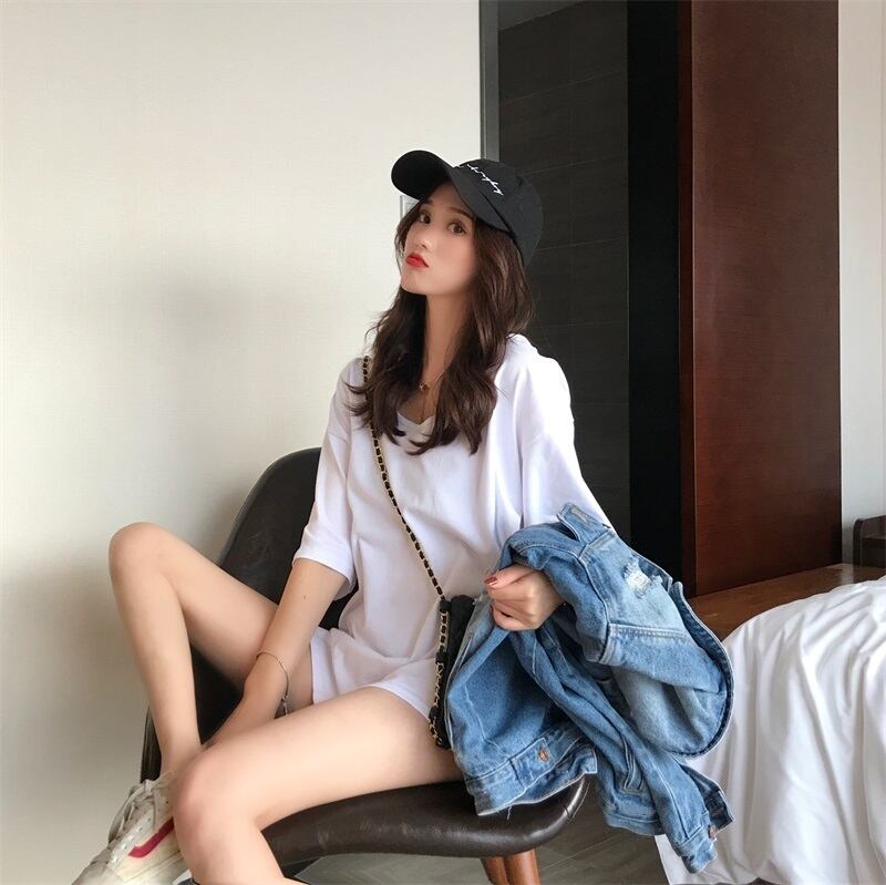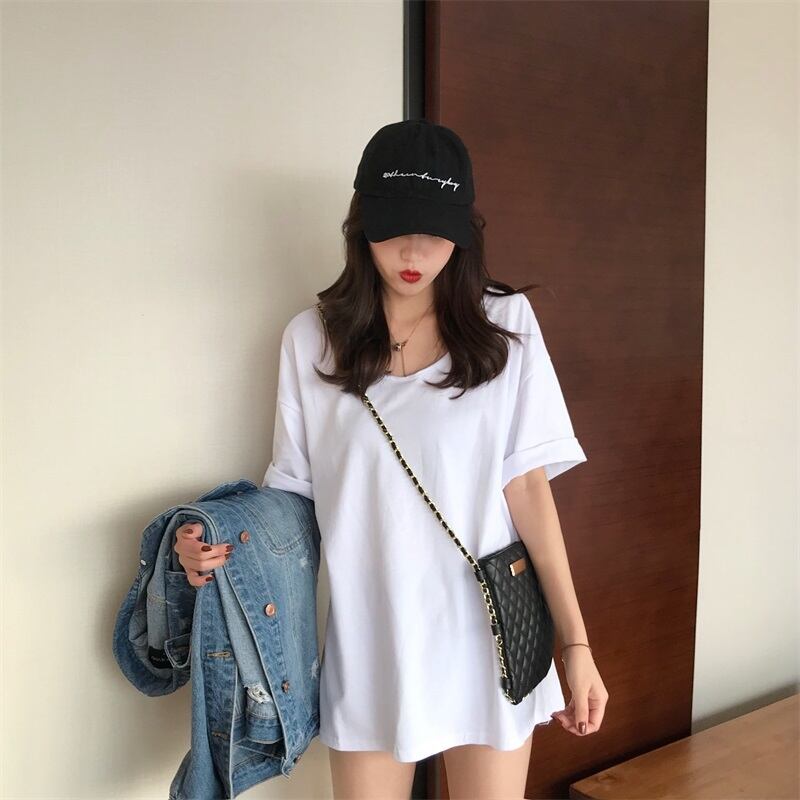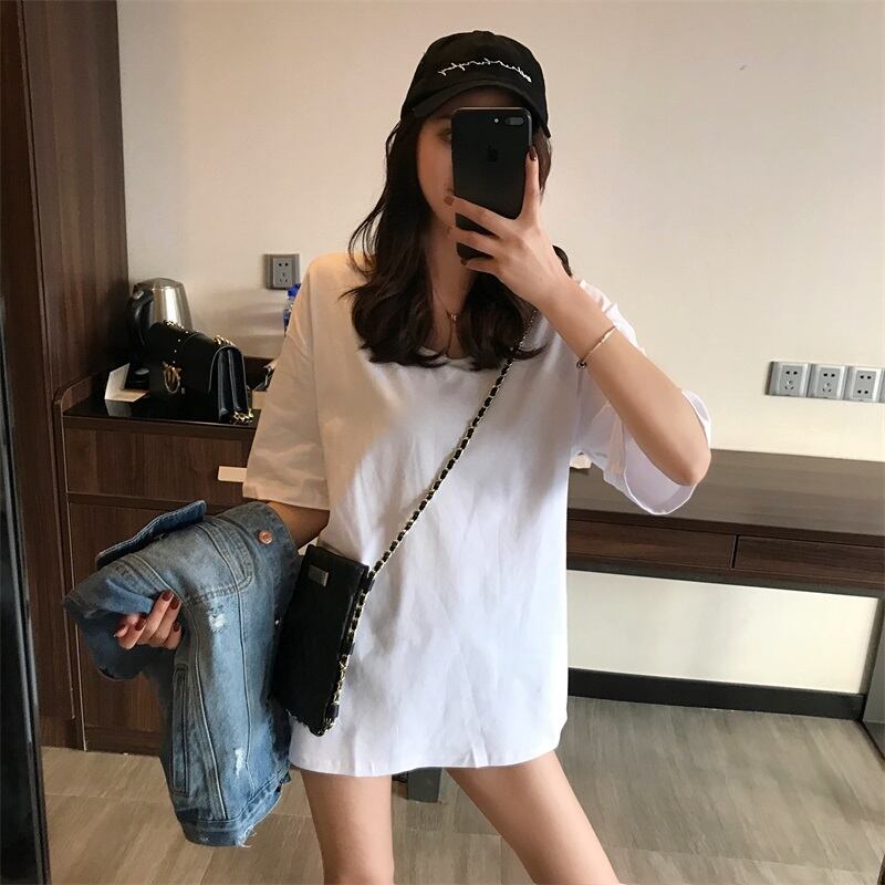 2020年初春の新作ルーズビッグラウンドネック半袖白Tシャツミドル丈カジュアルシャツ 1号婦人58609683821