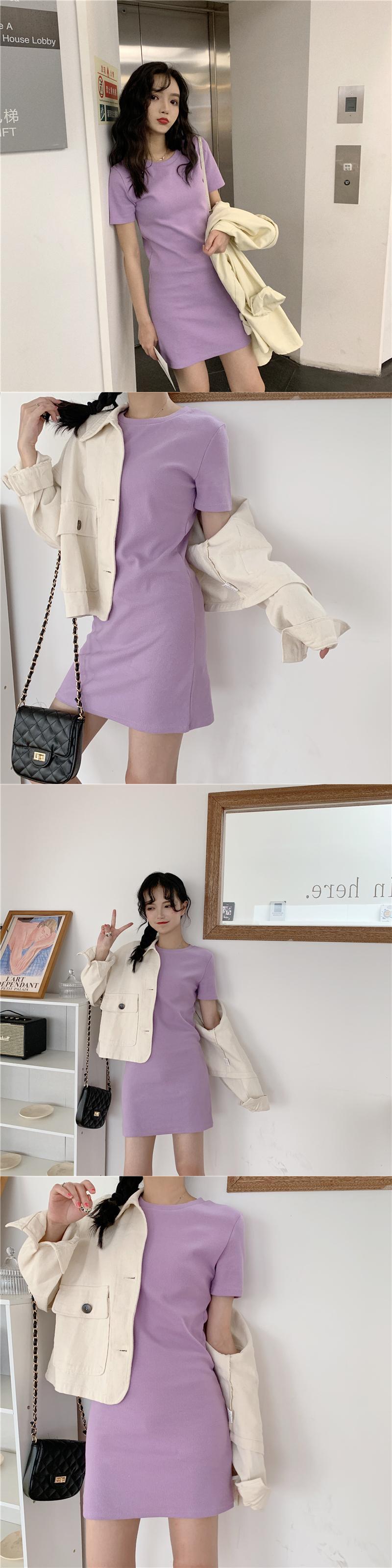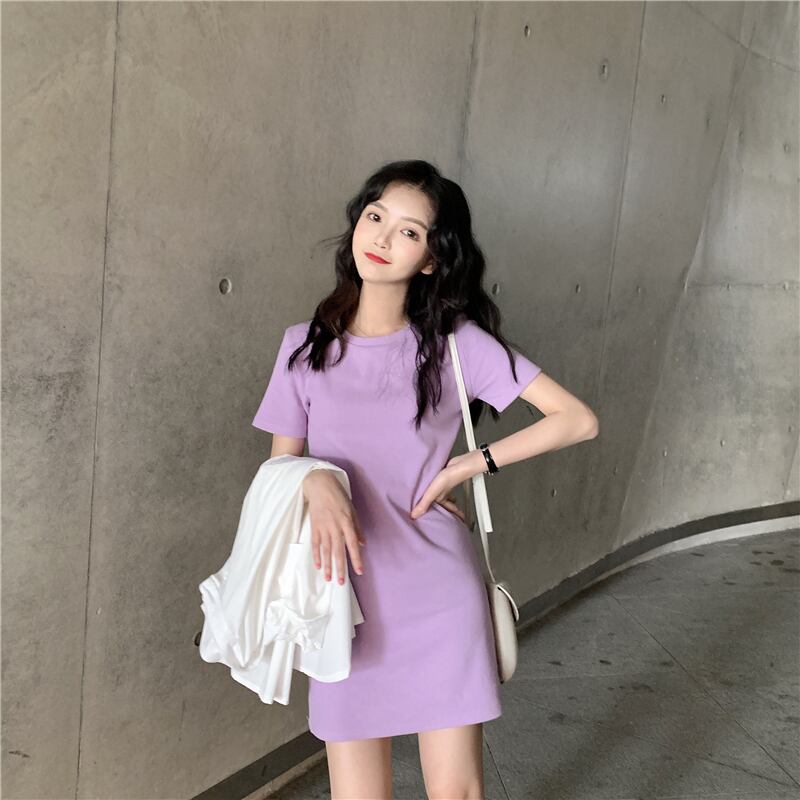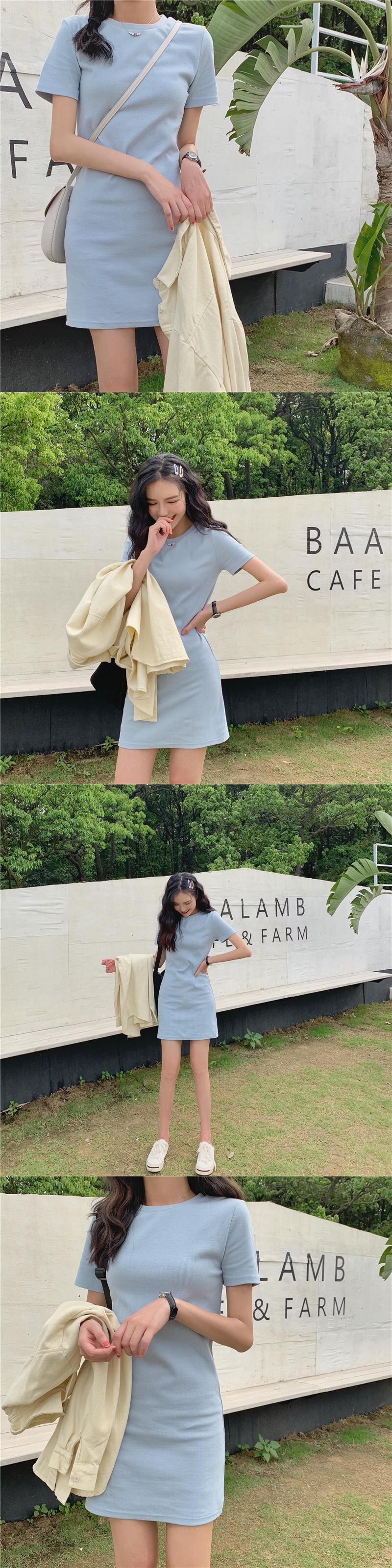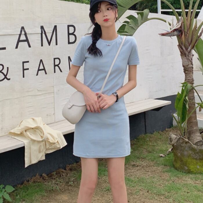 フレンチショートスリーブTシャツソリッドカラードレス2020年春前半の新しいスリムで薄いバッグヒップAラインスモールブラックドレス 1号婦人83177109224