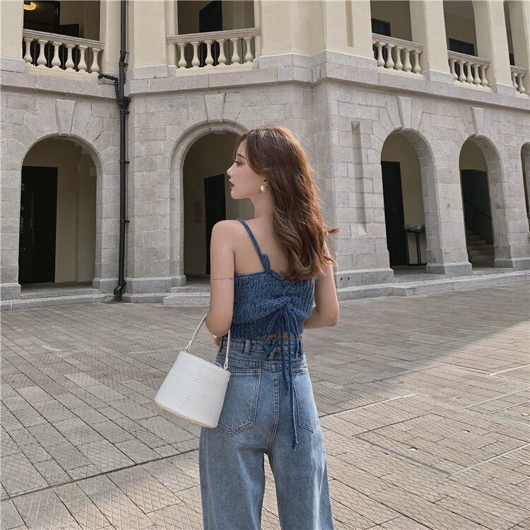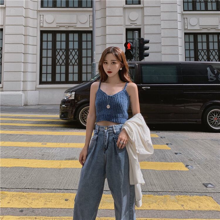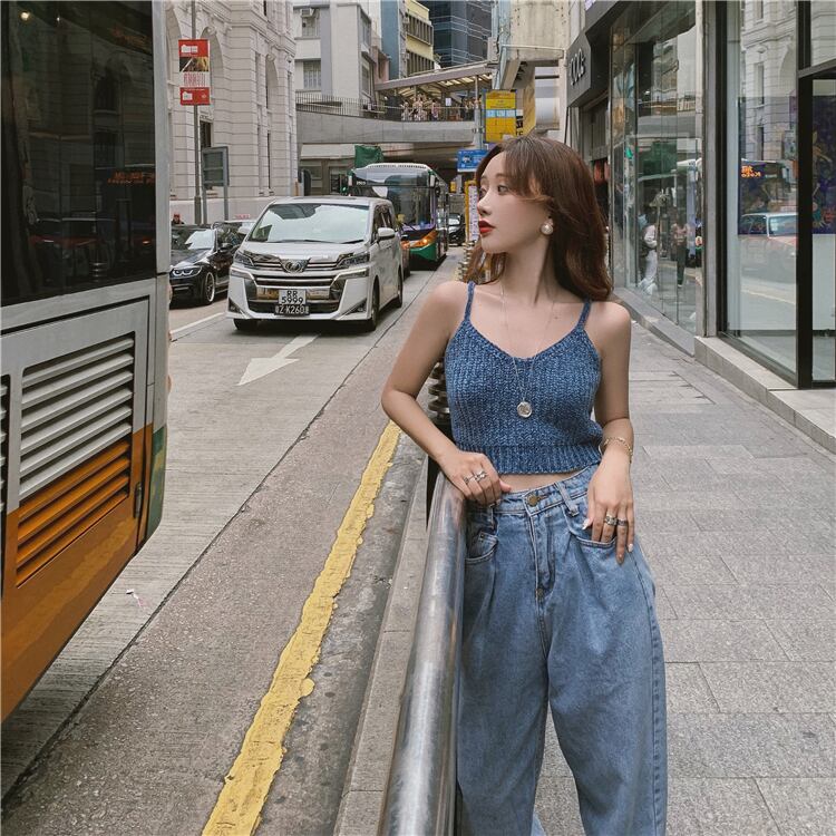 レトロなルーズなハイウエストワイドレッグジーンズ子供2020年初春の新しいニットスリングベストツーピーススーツ 1号婦人8688684003