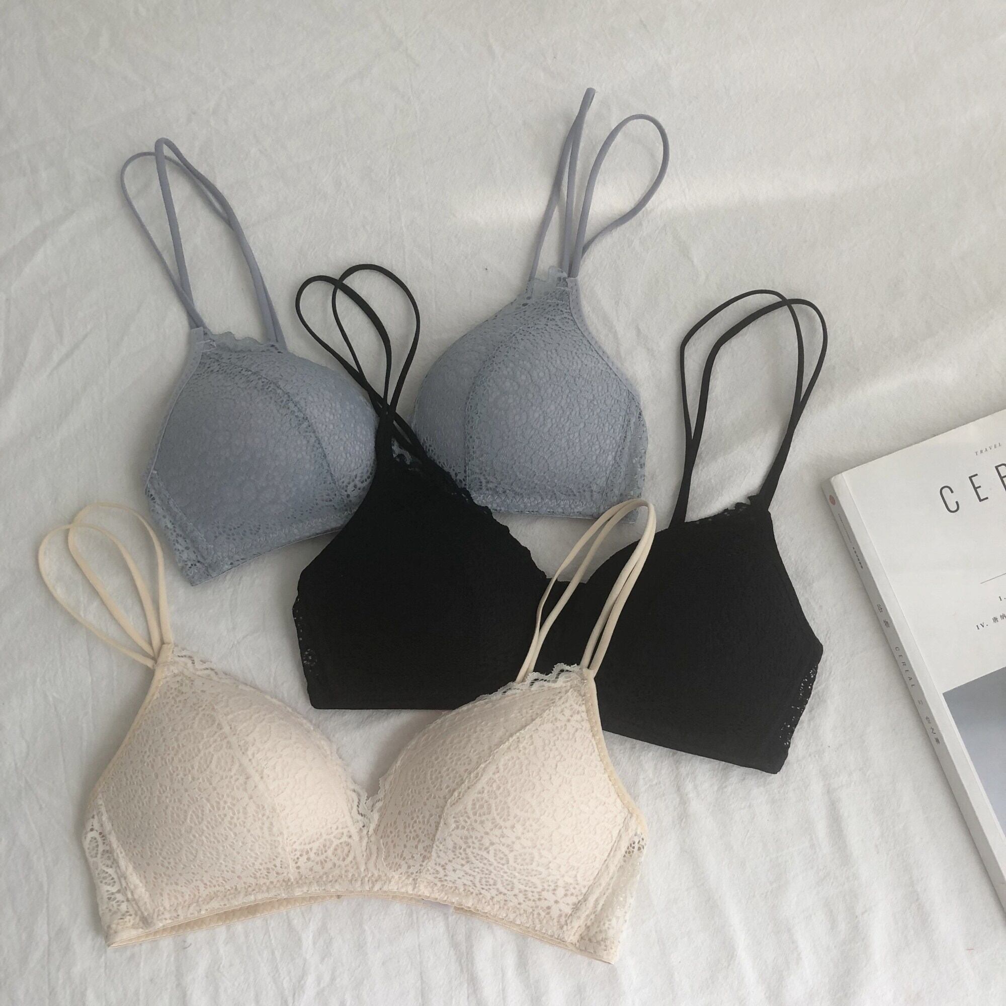 フレンチレースのセクシーな下着の女性の秋の学生は鋼のリングなしで集まり、胸部の薄いブラの調節可能な小さなブラを包みました 1号婦人51836748481