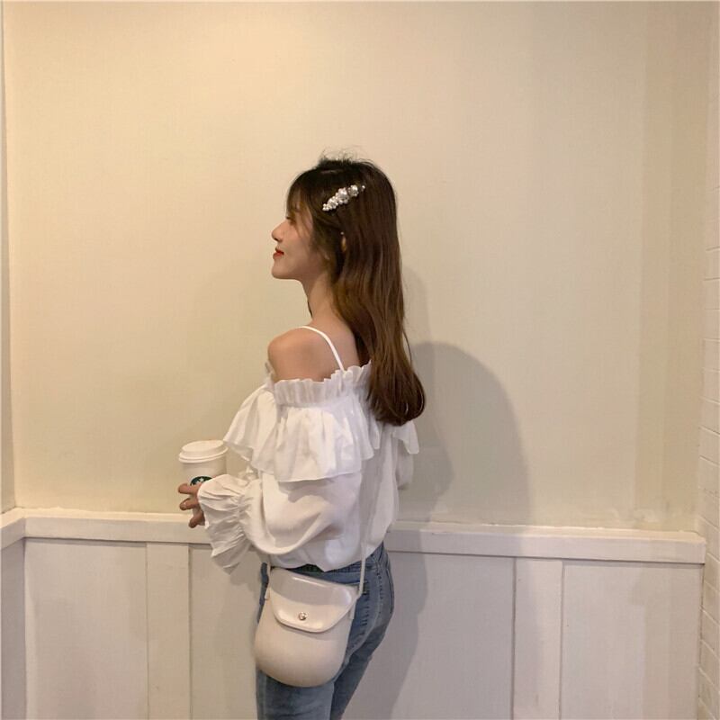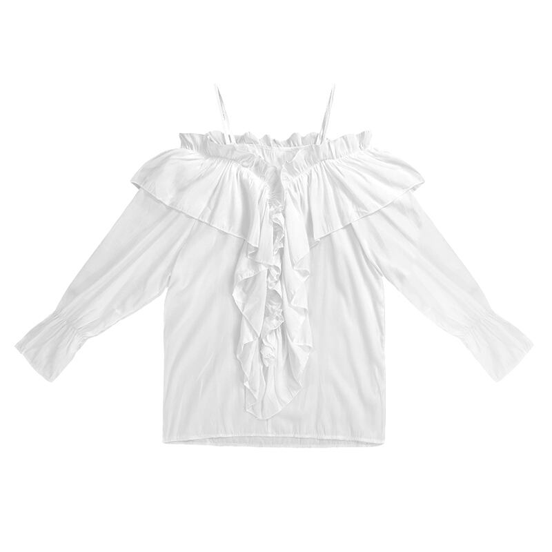 シャツ女性2019新しい春と秋の女性のシャツデザインセンスニッチシャツ長袖フリル白い肩 1号婦人36547329130