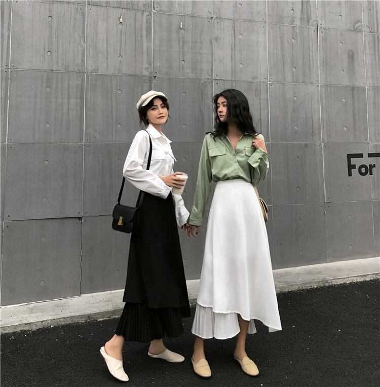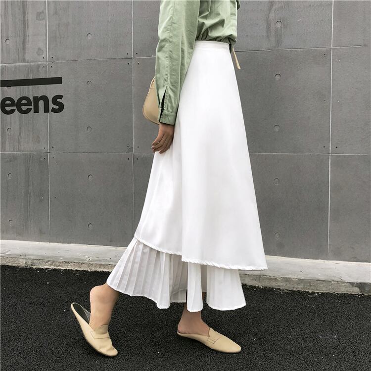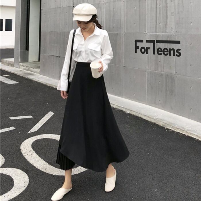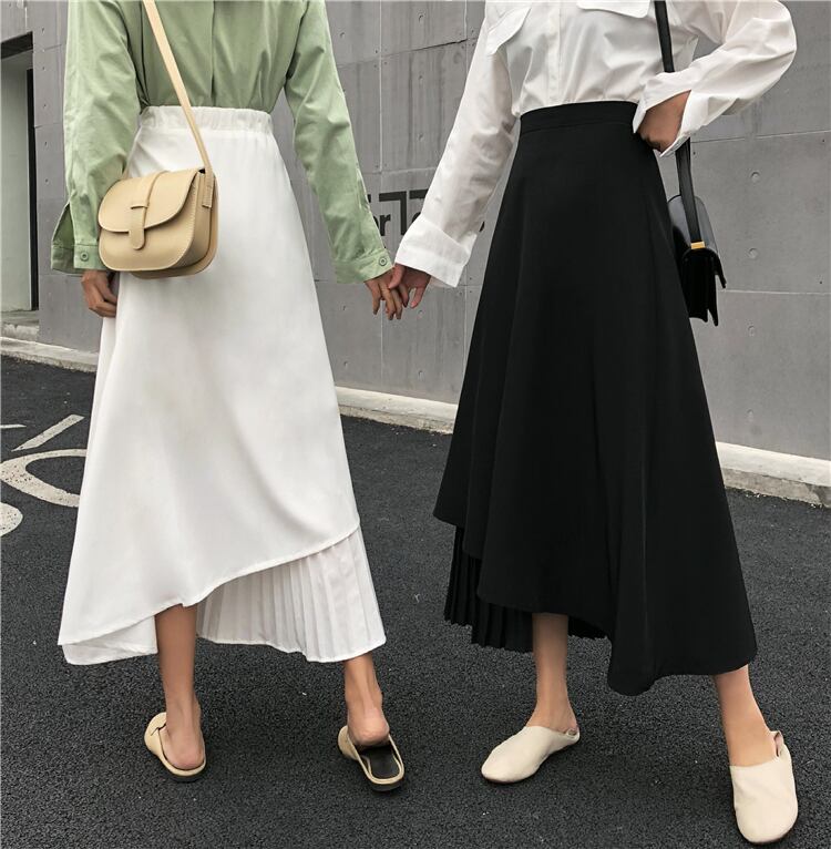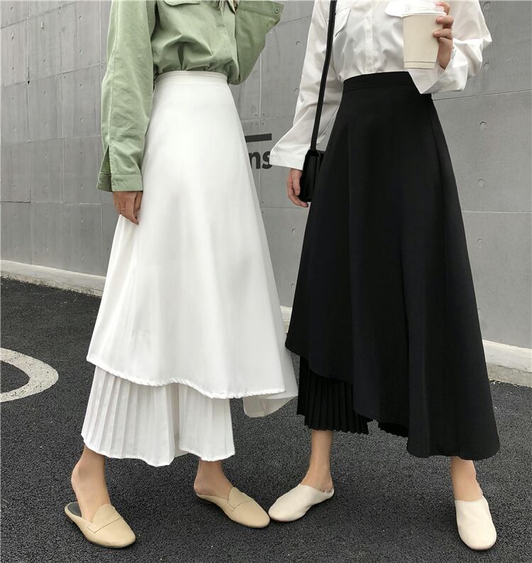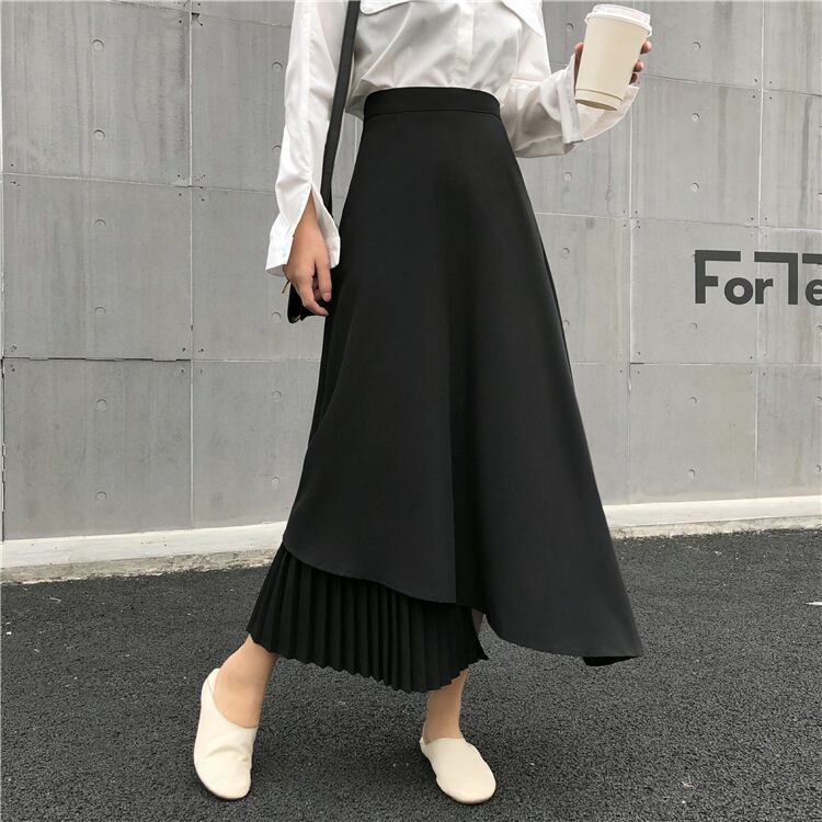 女性のミッドレングスブラックハーフレングススカート春と秋の不規則な白いステッチハイウエストAライン薄いプリーツスカート 1号婦人25670542101