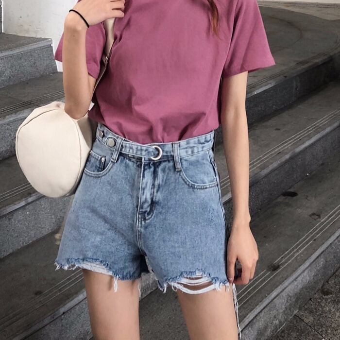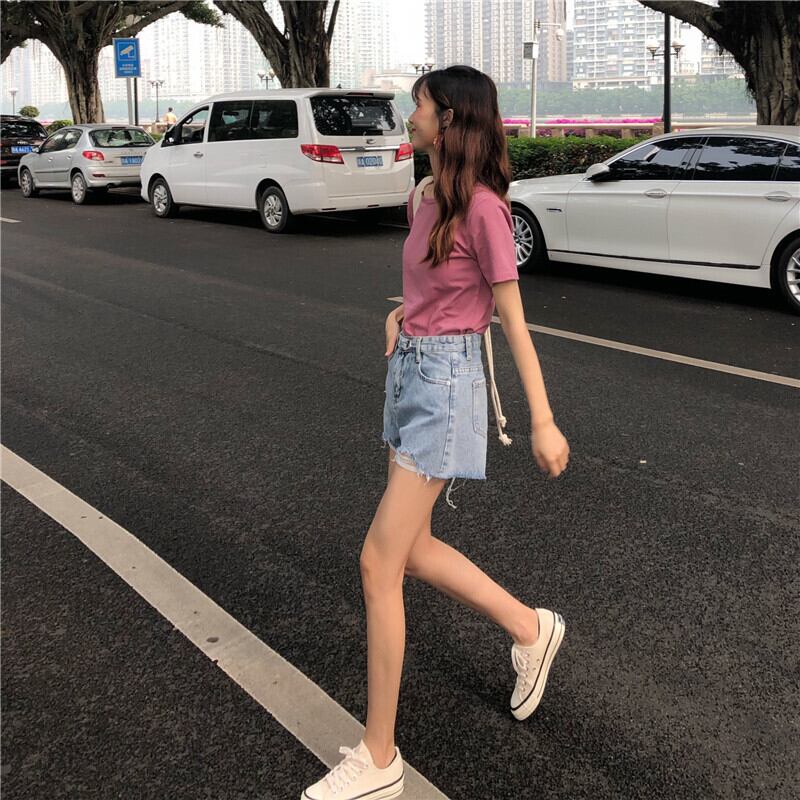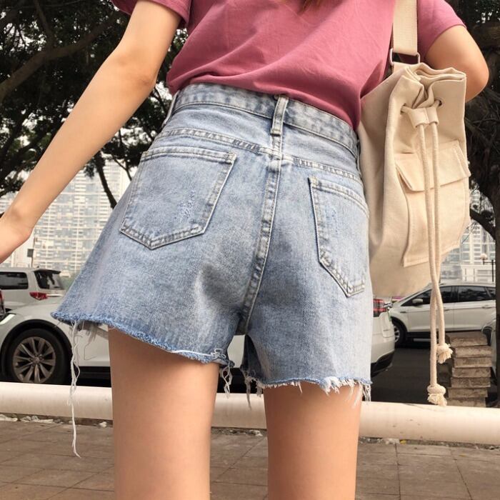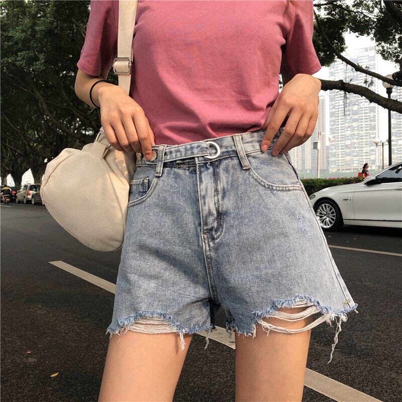 女性の夏のデニムショートパンツ2020新しいハイウエストルーズフィットの穴は薄いワイドレッグパンツ明るい色の生のエッジパンツトレンド 1号婦人88270084348