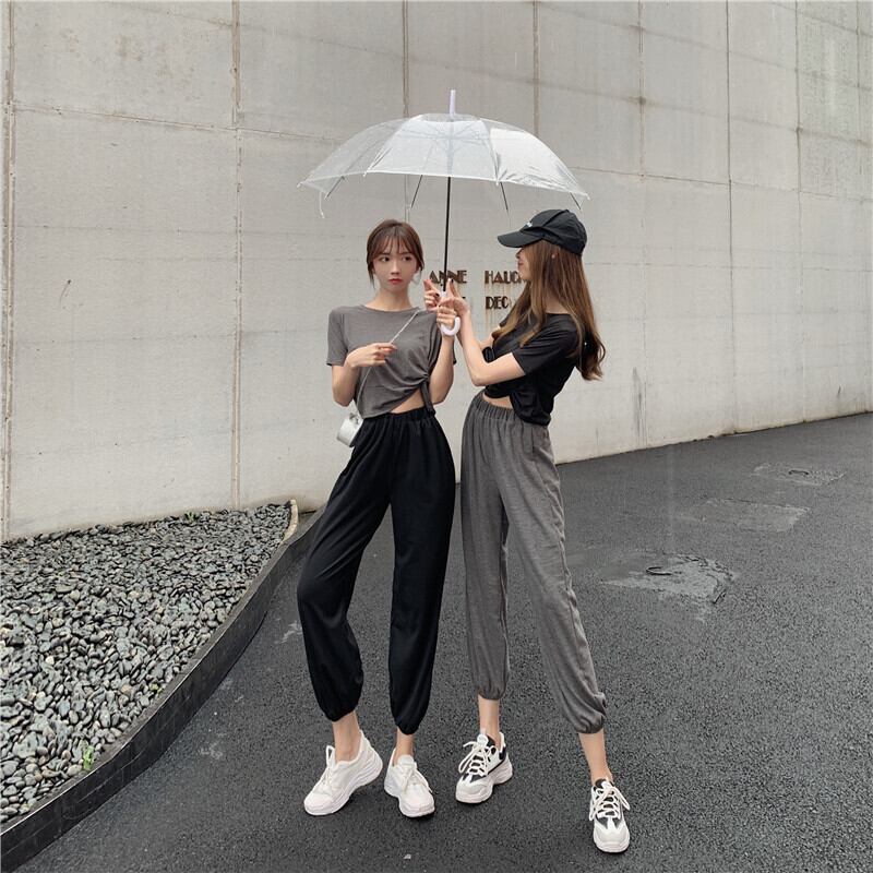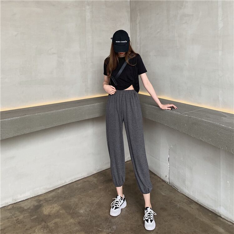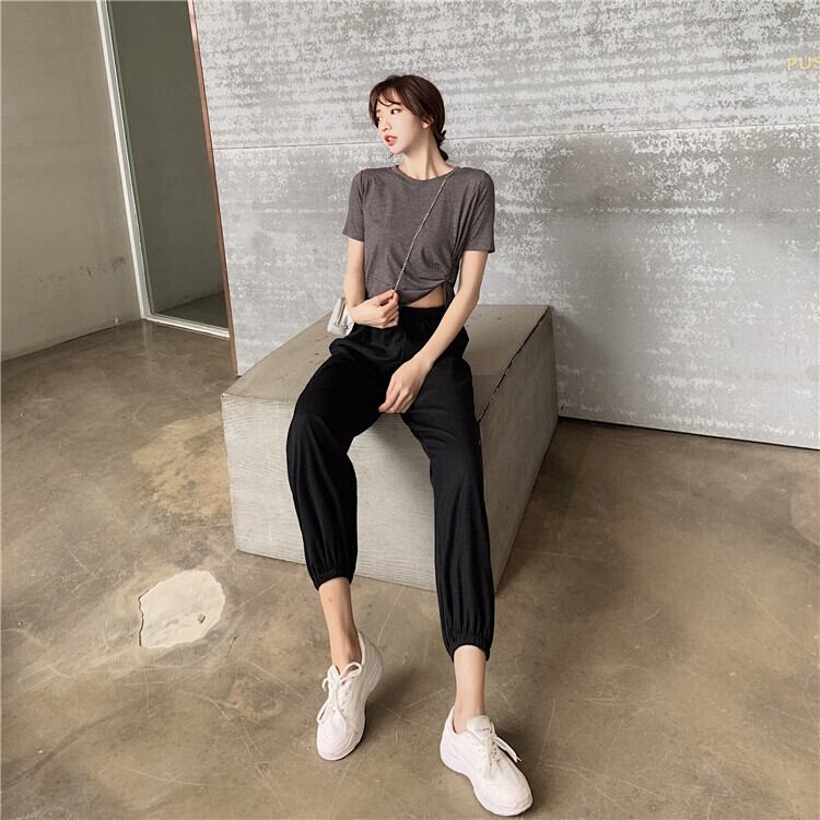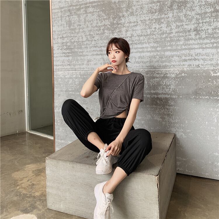 セット2020新しい女性の夏服エインスタイル半袖Tシャツオールマッチ無地カジュアルツーピースハーレムパンツ 1号婦人12401254387