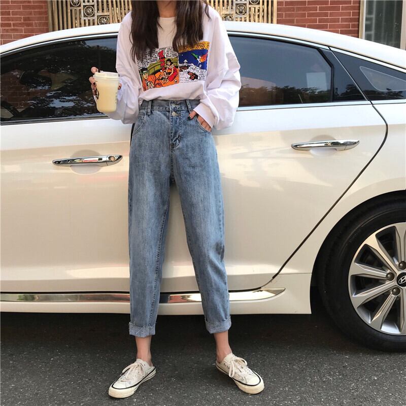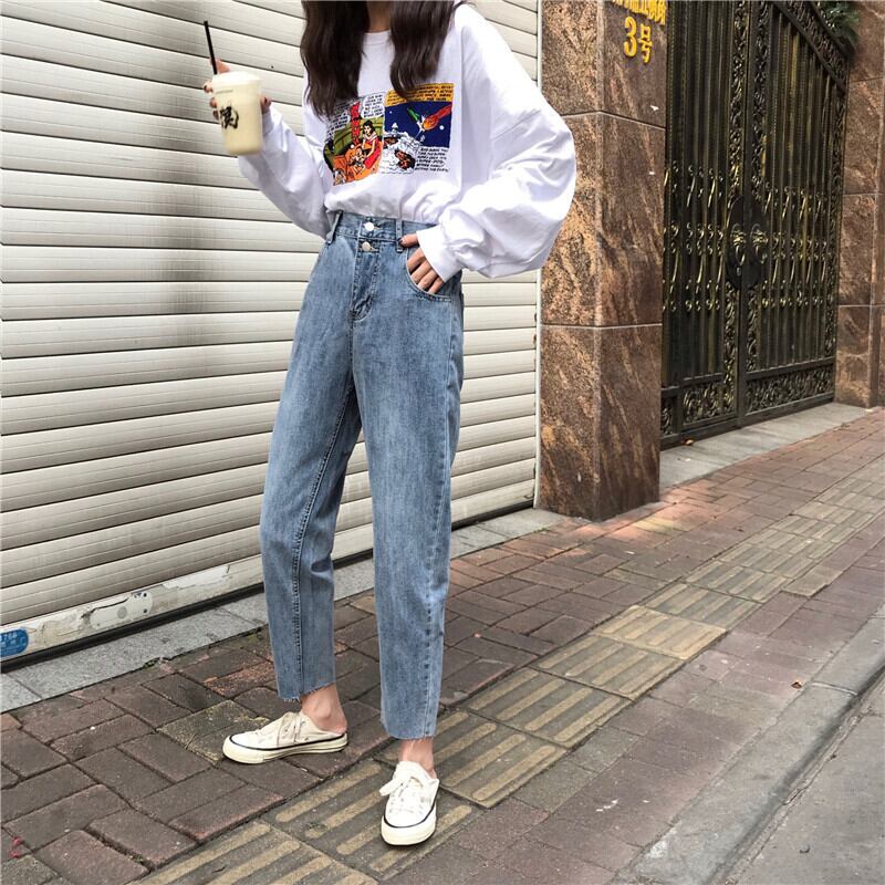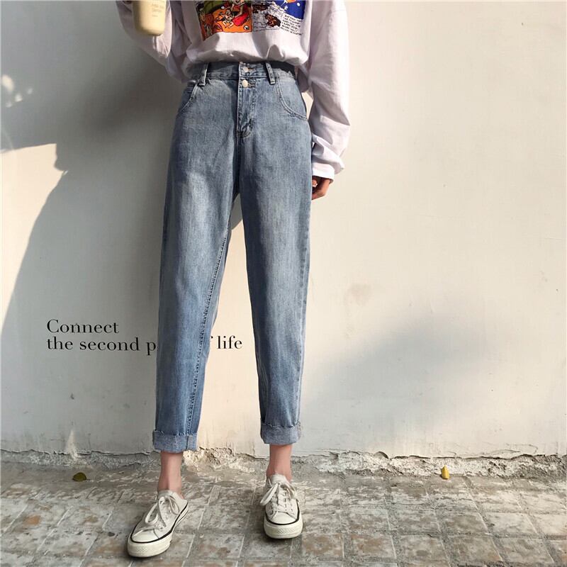 パンツレディース2020年新作夏薄手ストレートジーンズハイウエスト痩身レディースゆったりワイドレッグハーレムパンツ 1号婦人61356374000