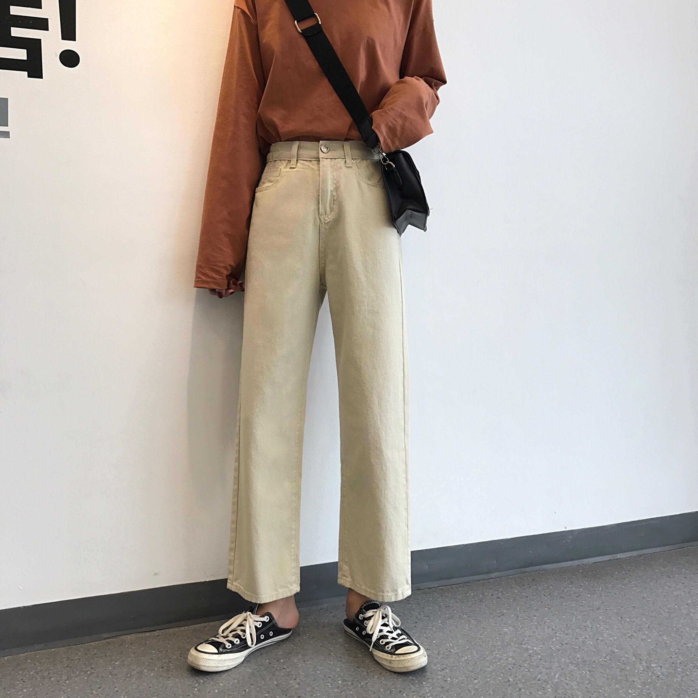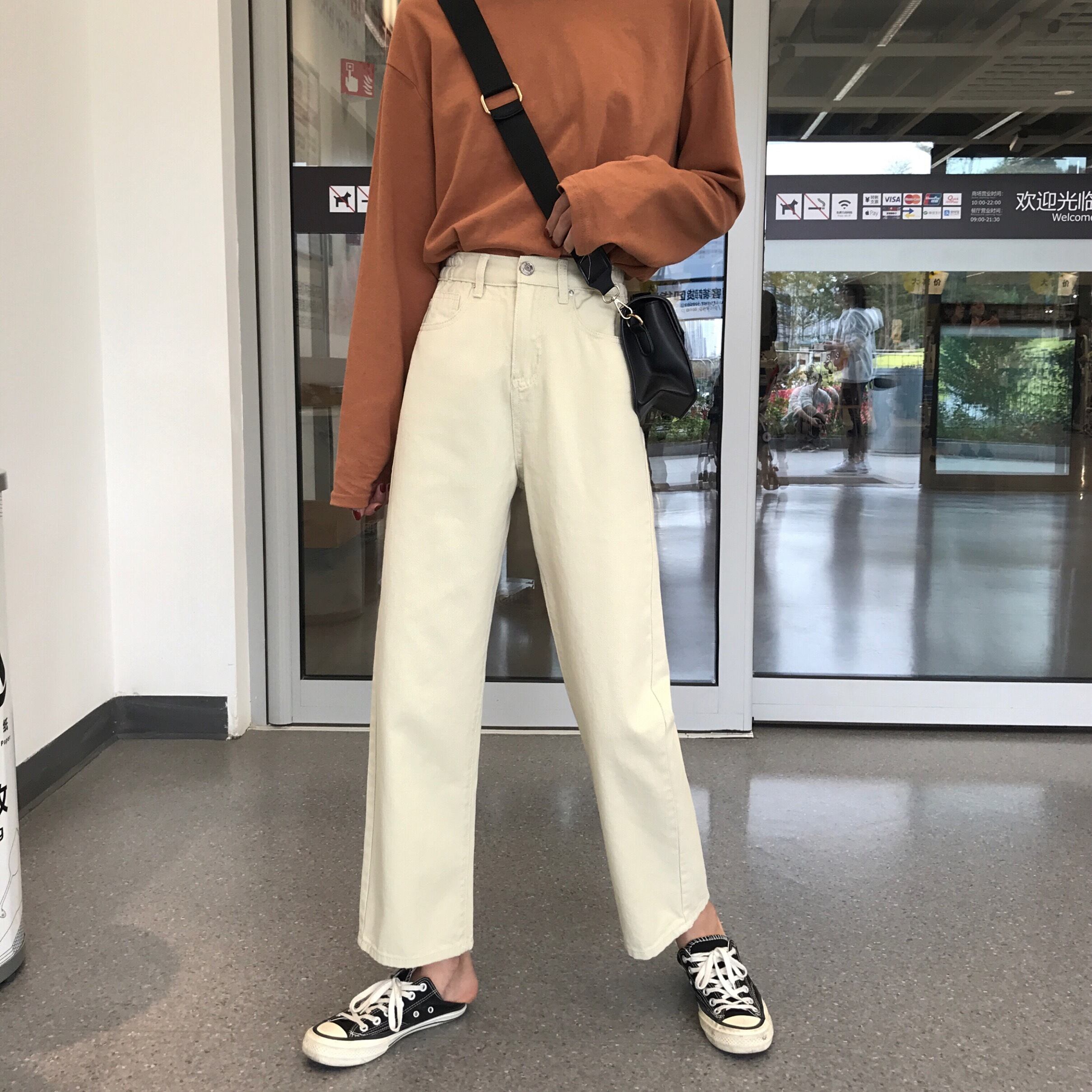 2020新しい黒の女性のジーンズ夏の薄いセクションハイウエスト痩身オフホワイトルーズストレートレッグパンツ 1号婦人1345627771