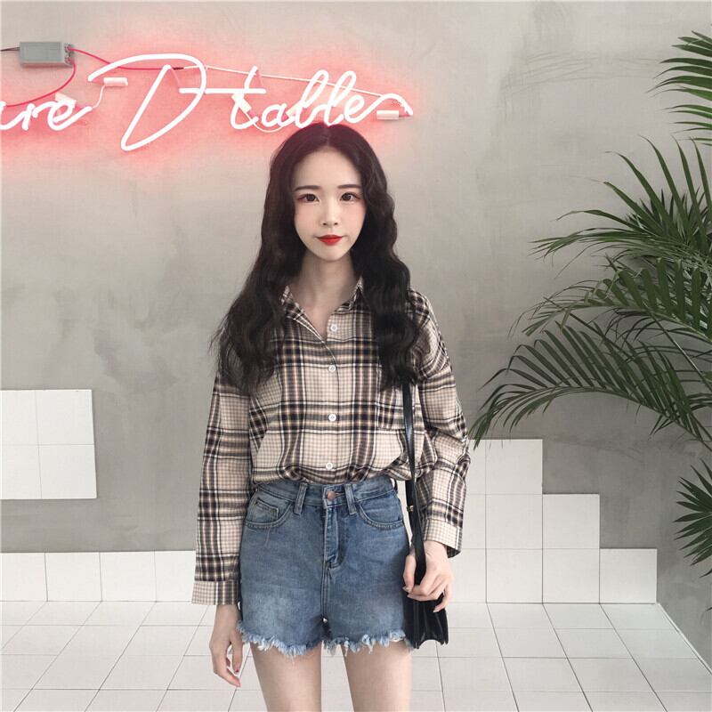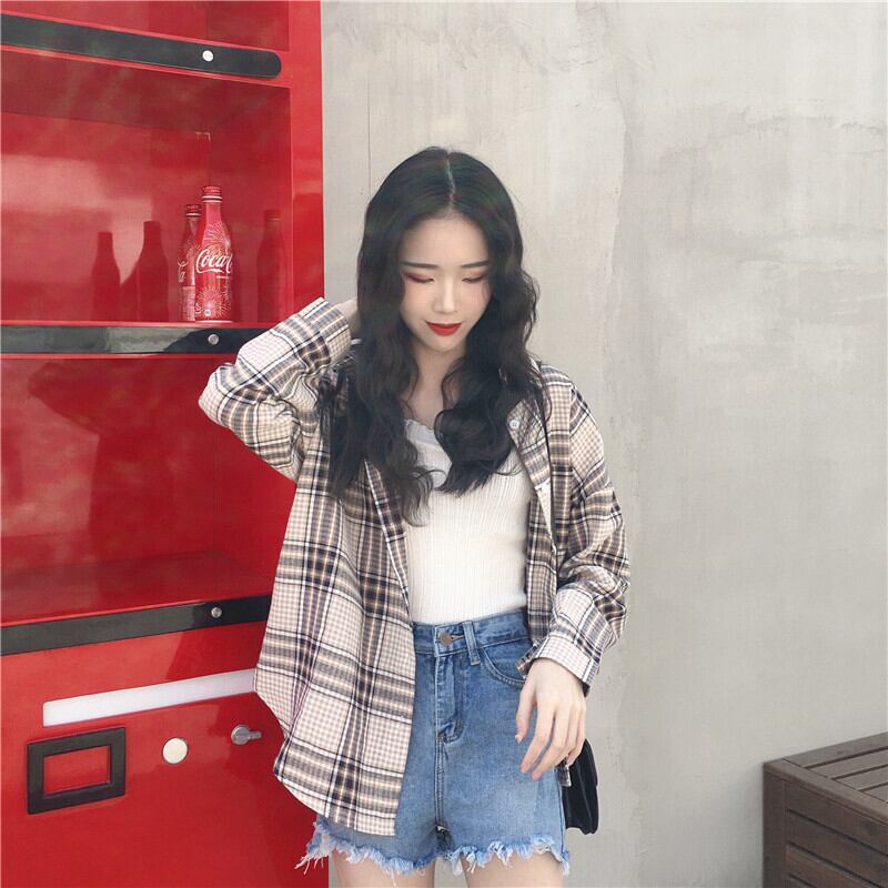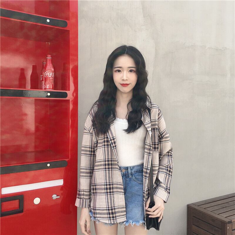 シャツ女性のデザイン感覚ニッチ春の服2020新しいレトロレディースチェック柄の薄いコート長袖トップトレンド 1号婦人12513147600