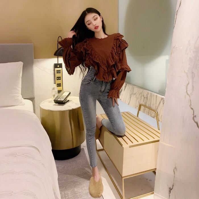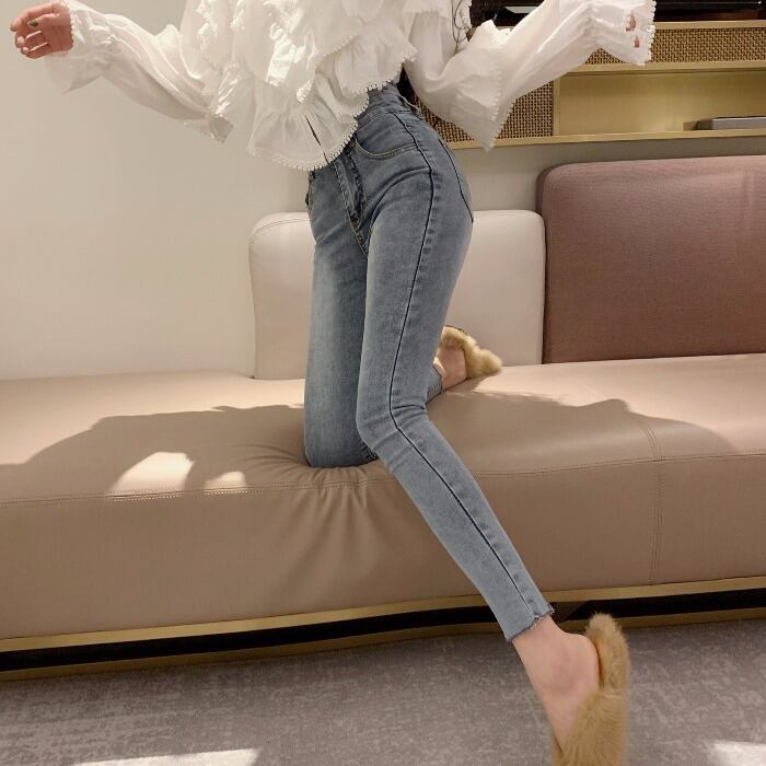 2019新しい秋の女性のパンツレトロオールマッチレディースジーンズスリム痩身足ハイウエストペンシルパンツ 1号婦人92398495544
