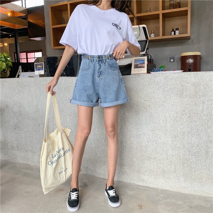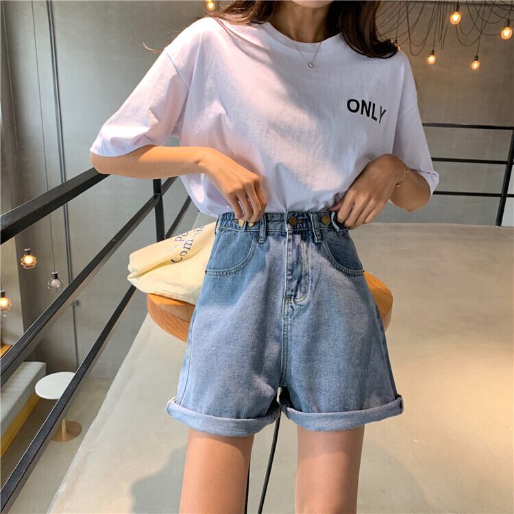 ホワイトジーンズサマースリムルーズウエストスリムワイドレッグAラインショーツ2020パンツ 1号婦人93912822359
