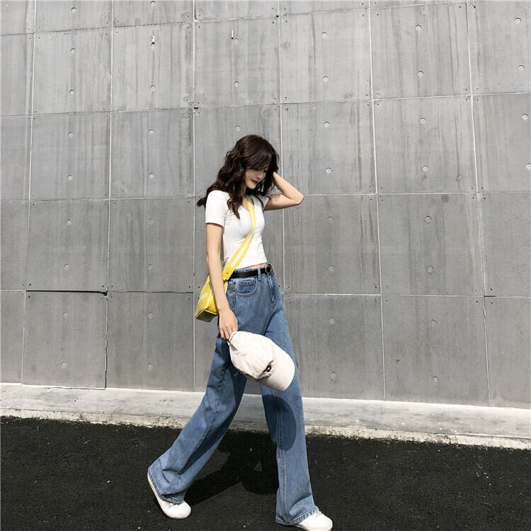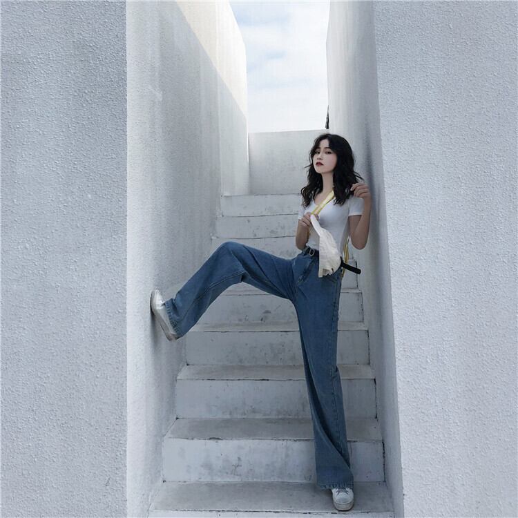 ハイウエストのドレープヒュナジーンズの春先の拡張バージョン緩いスーパーロングワイド脚モップストレートパンツ背の高い女性 1号婦人65746050855