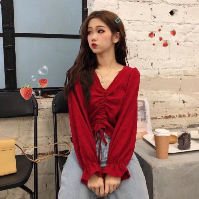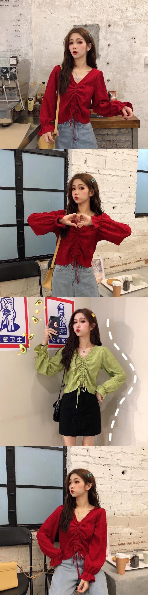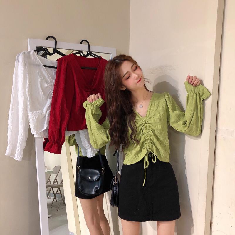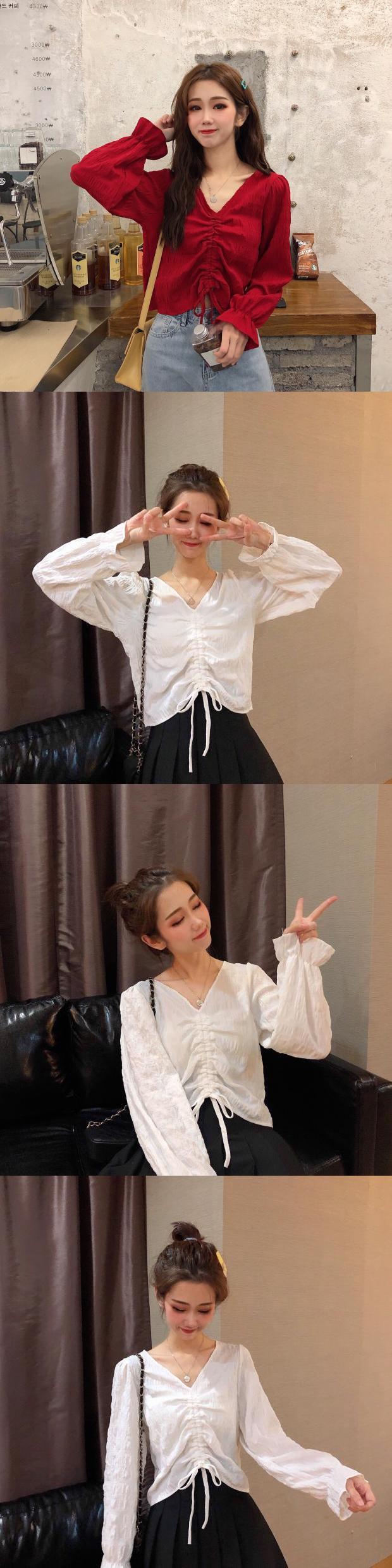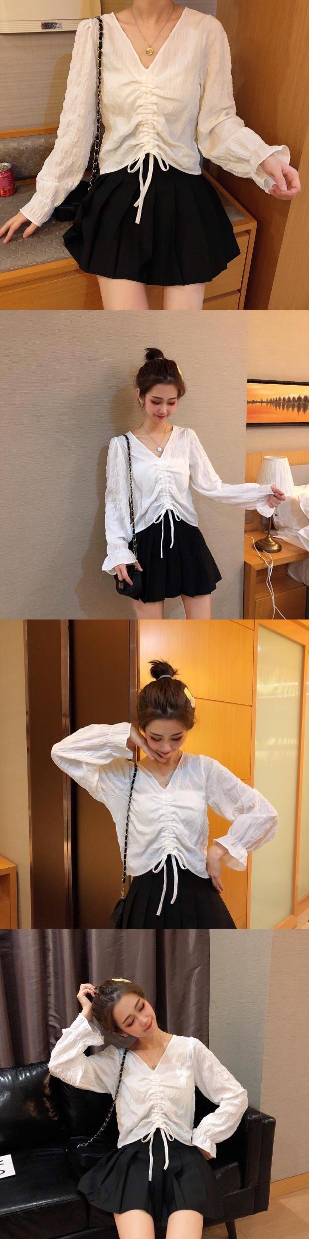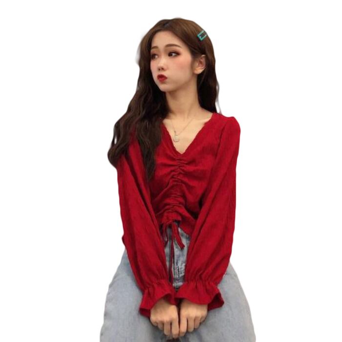 2020年春の新しい女性の巾着レースセクシーなVネックトランペットスリーブ長袖シャツホワイトライト成熟した上着 1号婦人29733836141
