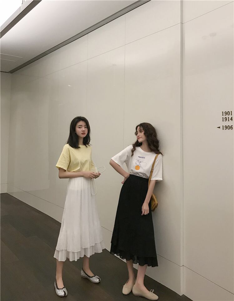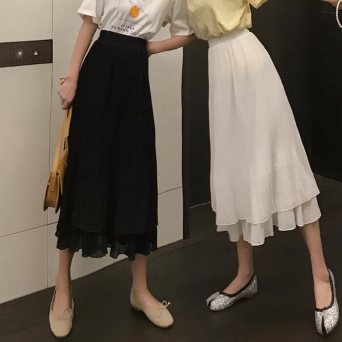 レディースサマードレス2019新バージョンのスリムAラインスモールブラックドレスハイウエストプリーツスカートルーズミドル丈ハーフレングススカート 1号婦人62970904473