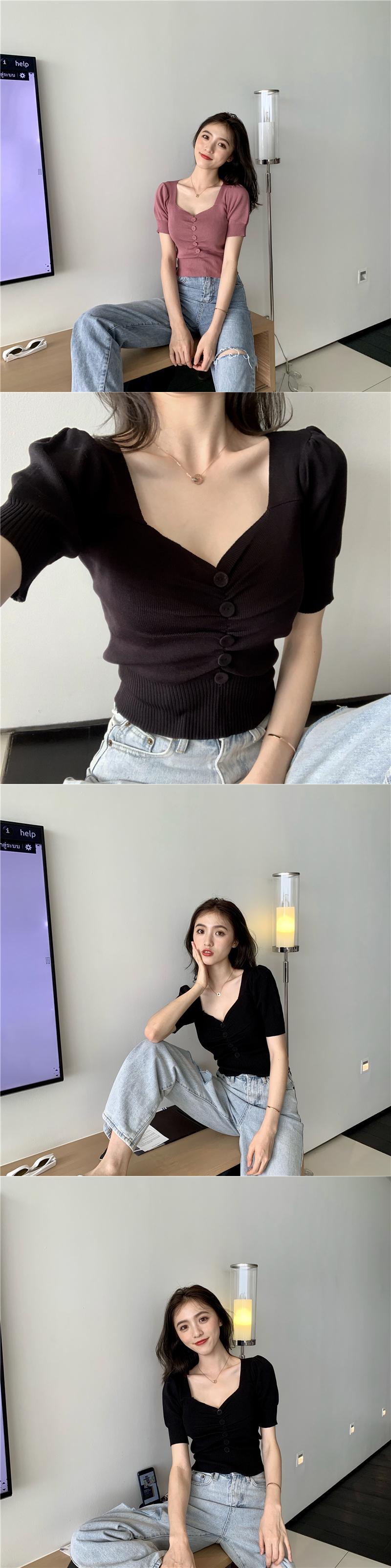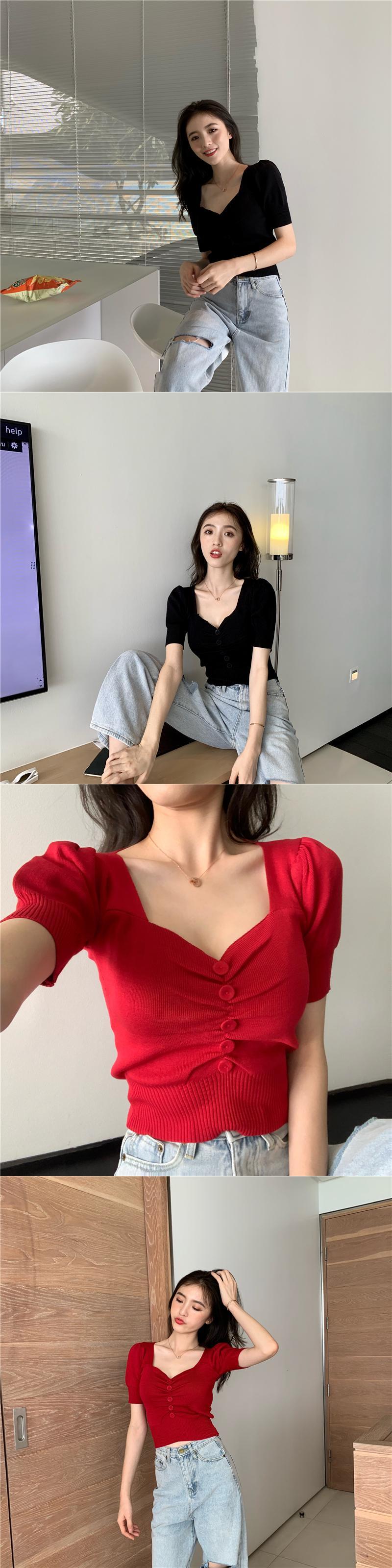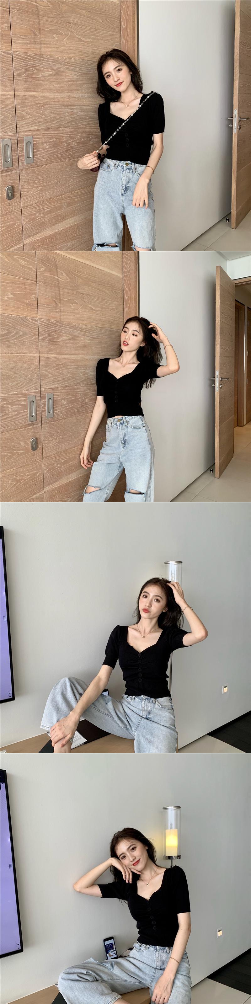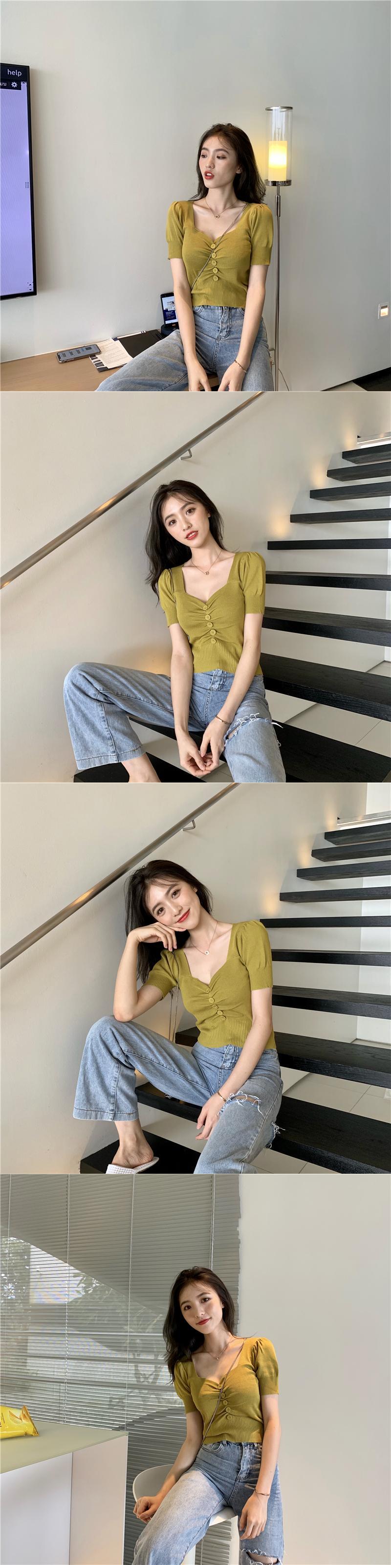 Tシャツレディース2020新しい流行の夏レトロセクシーなVネックスリムスリム半袖ニットトップインウエスタンスタイル 1号婦人30192925291