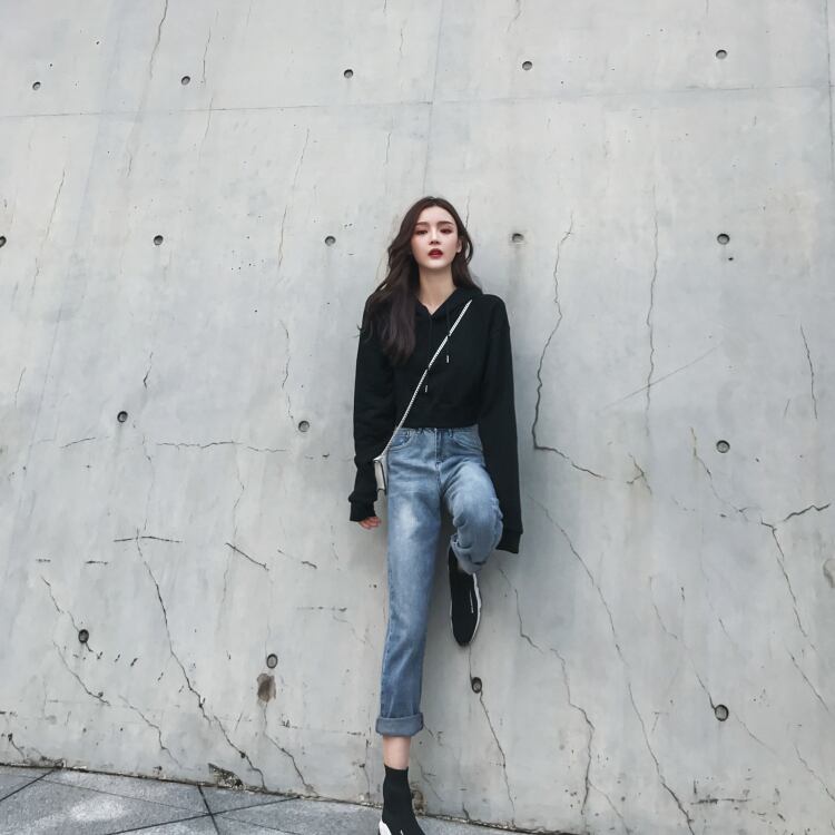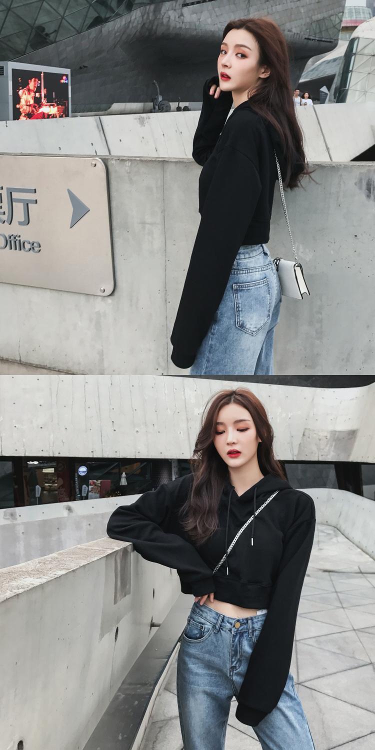 香港スタイルのレトロなショートクロップドセーターレディース2020新しい流行の秋ルーズスリム長袖フード付きプルオーバートップ 1号婦人40775582823