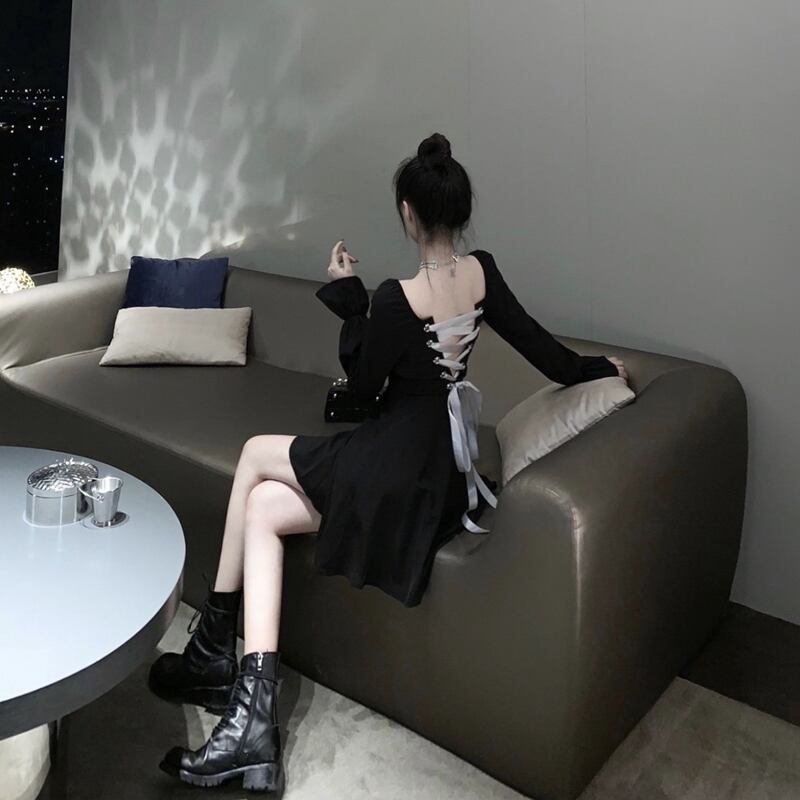 陰謀の宮殿ヘップバーンスタイルのリトルブラックドレス2020新しいフレンチバックVネックストラップセクシーなドレストレンド 1号婦人89845944202