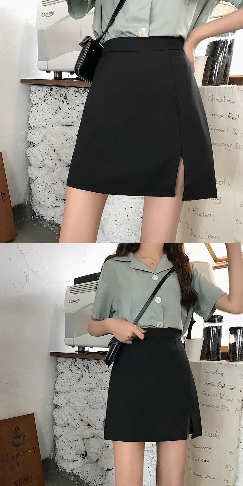 学生ショートスカート2020夏スプリットスカート黒ハイウエストAラインスカート女性夏西安細いヒップスカート 1号婦人53275584401