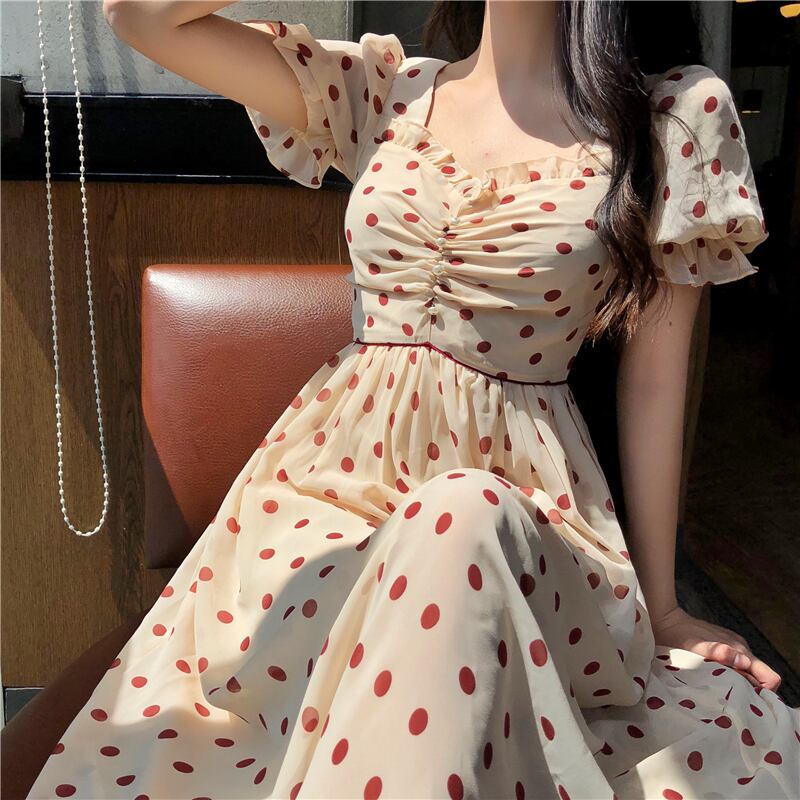 気質水玉ドレスフェアリースーパーフェアリーセンセーションオーバーザニーミドル丈スカート2020サマーワールドウェアドレス 1号婦人85208956164