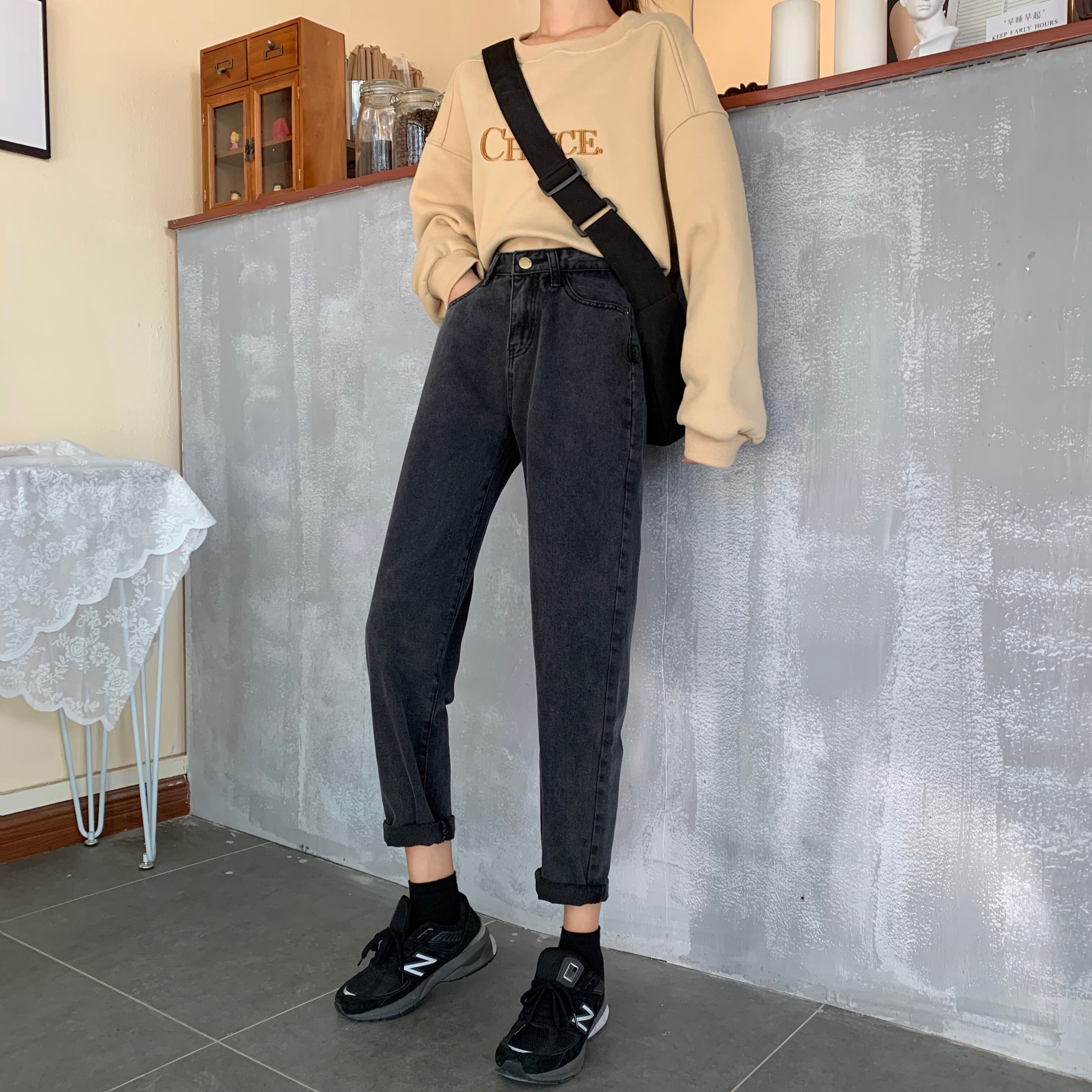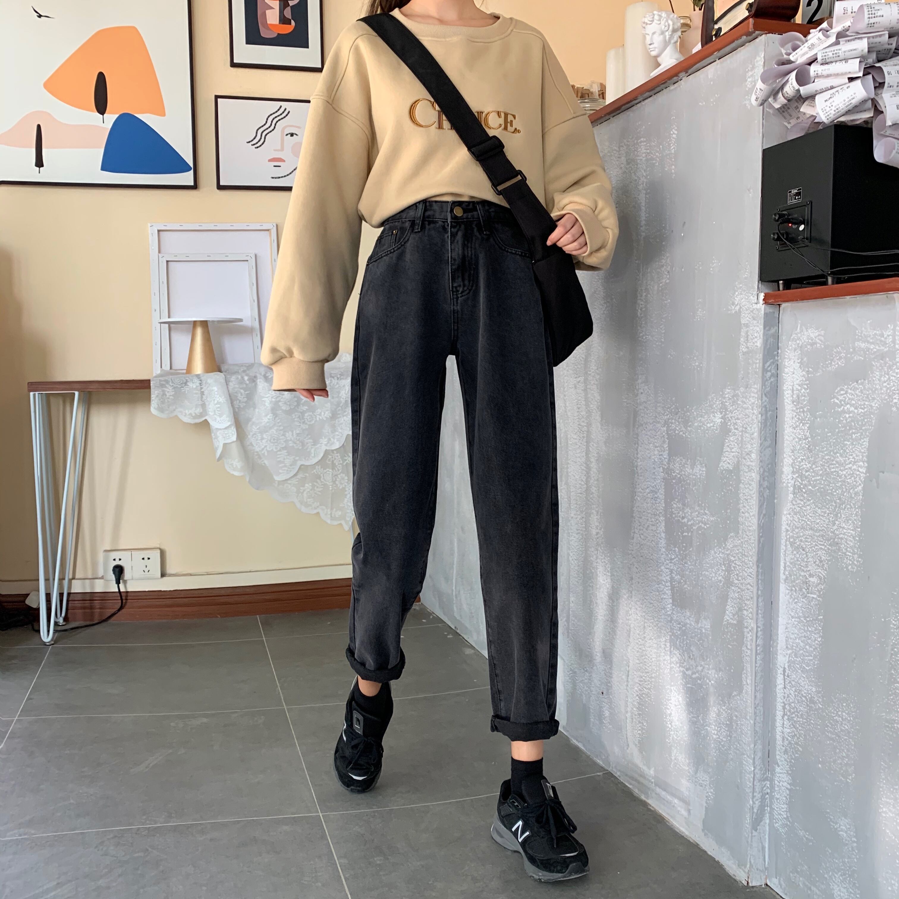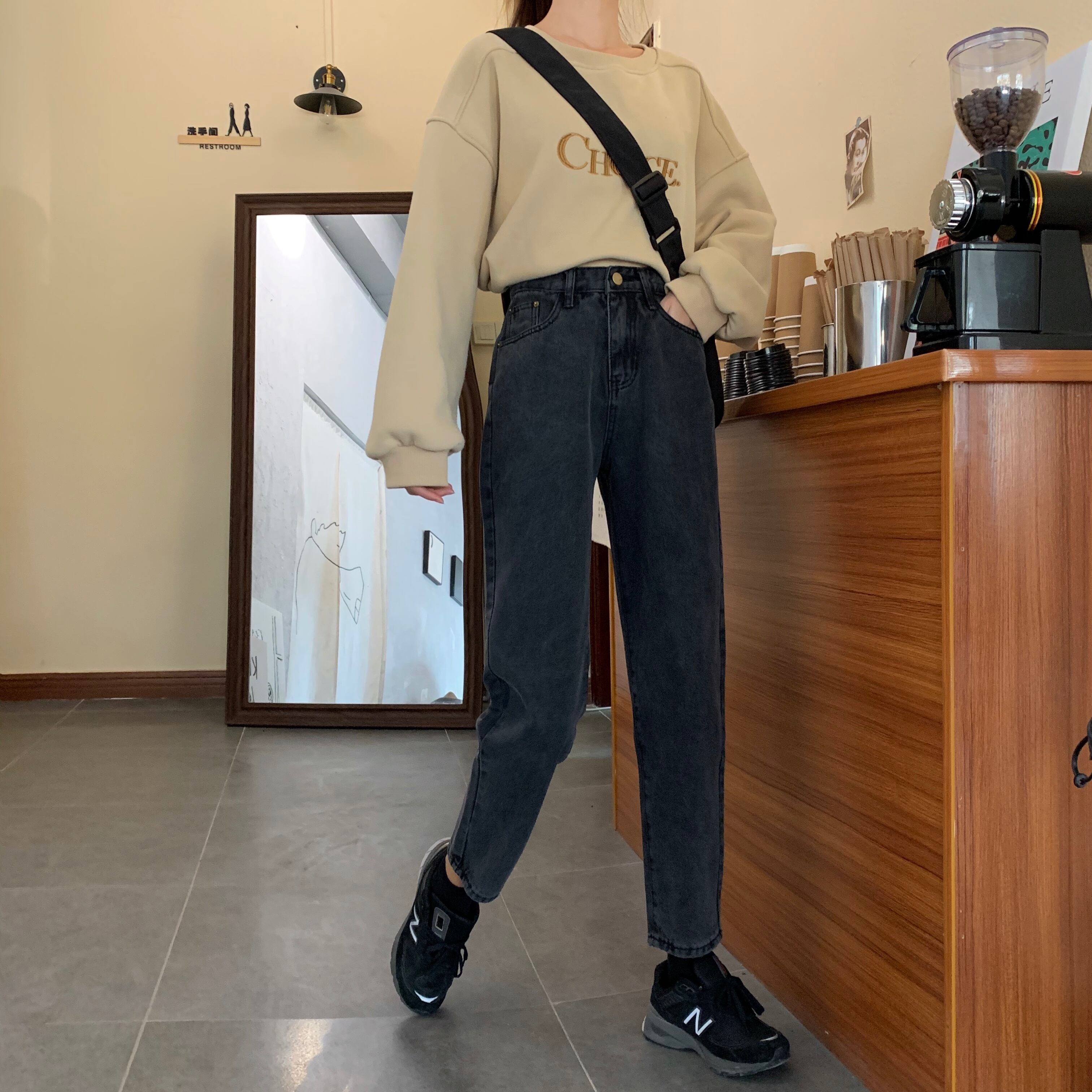 パンツレディース2020新しい秋と冬のハイウエストと薄いワイルドブラックレディースジーンズレディースストレートルーズワイドレッグ 1号婦人78955814465