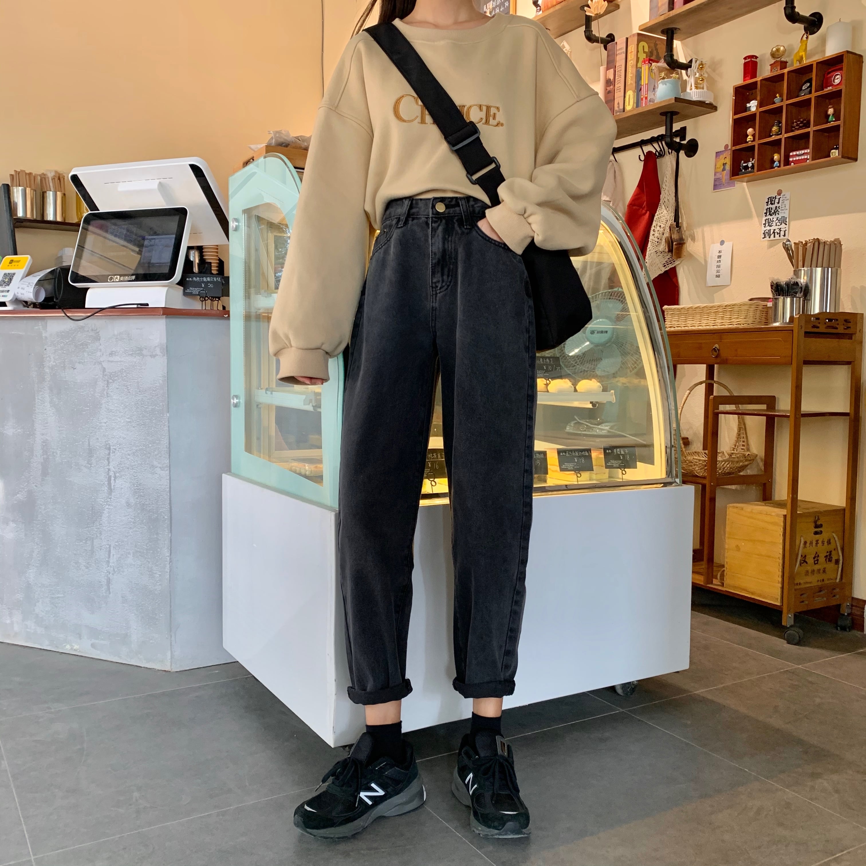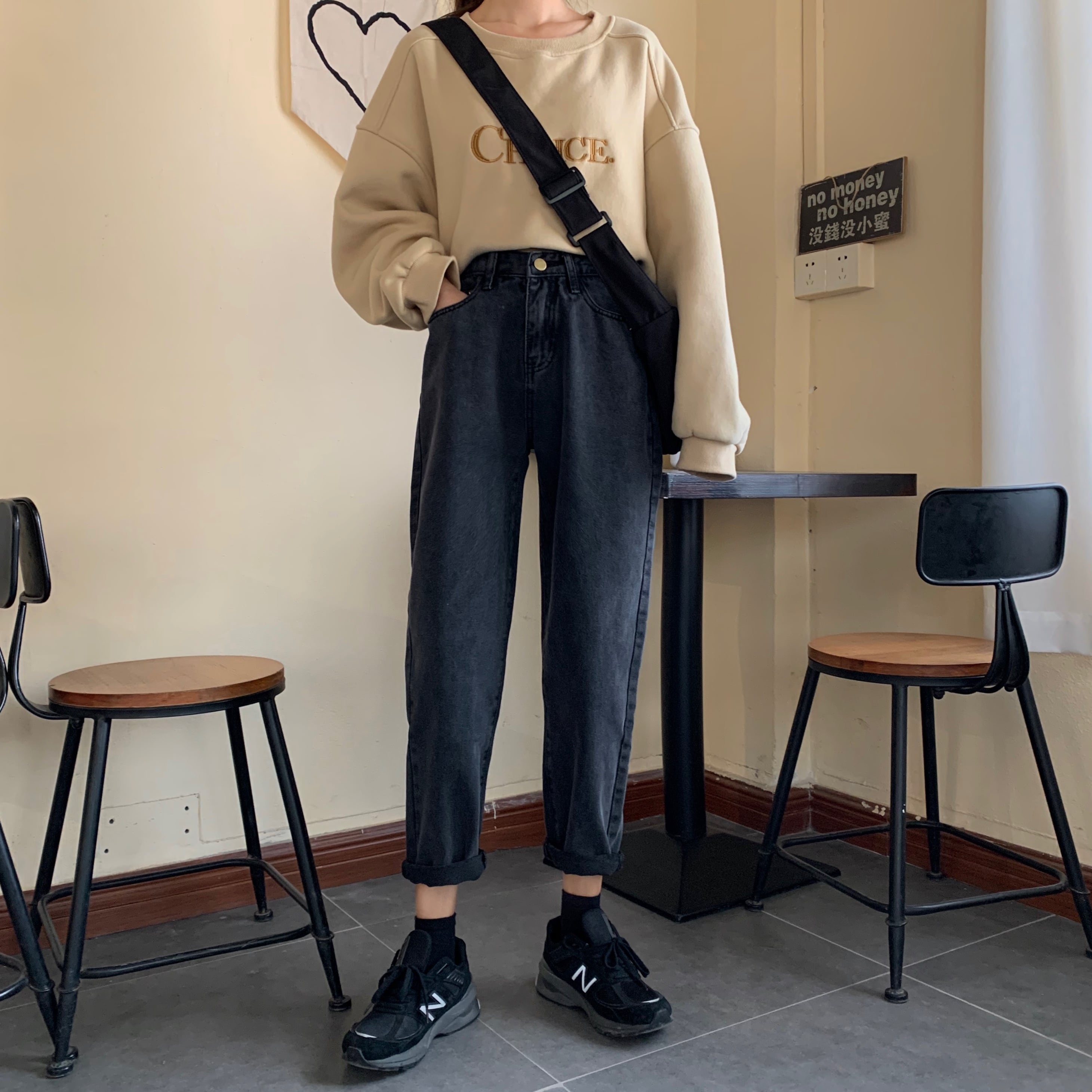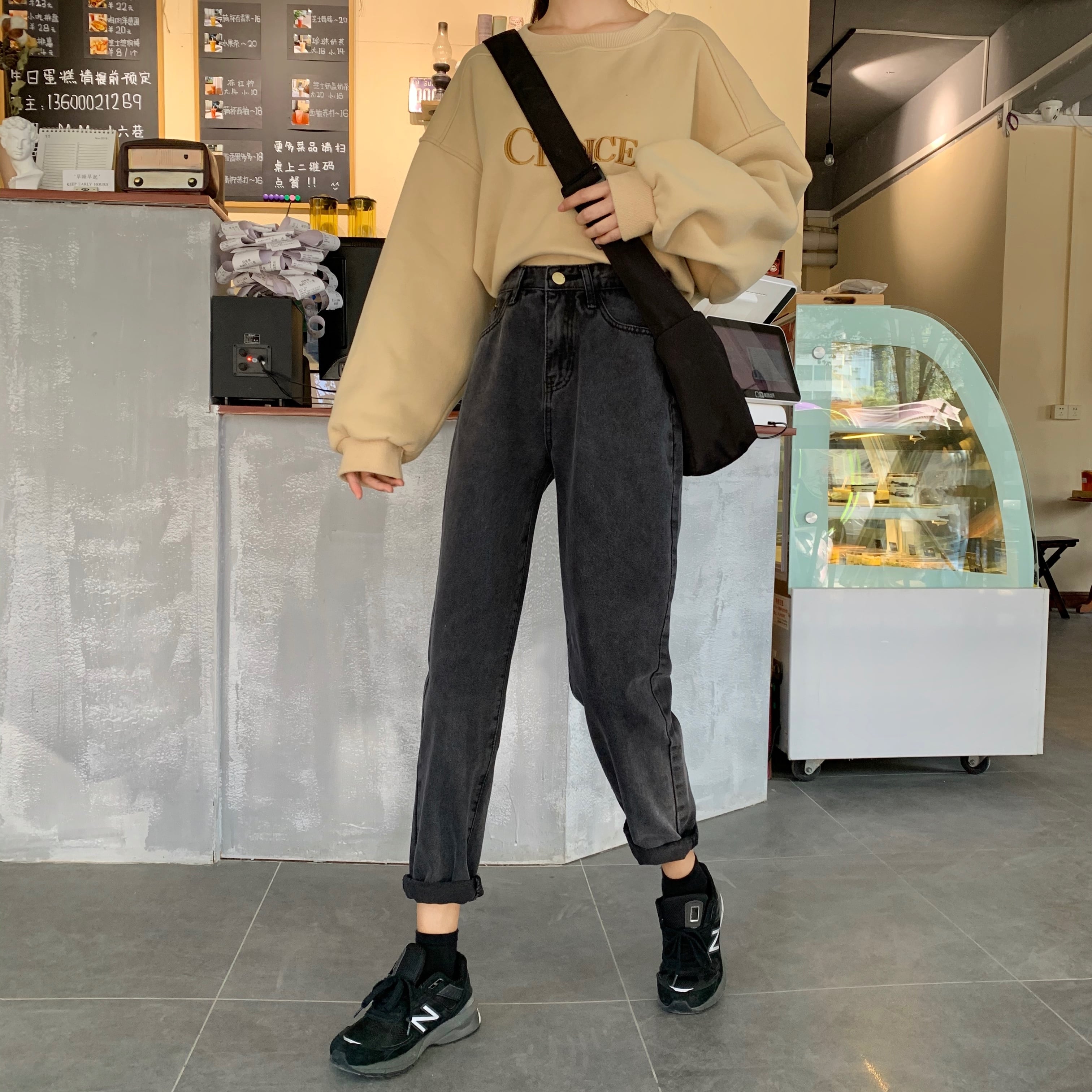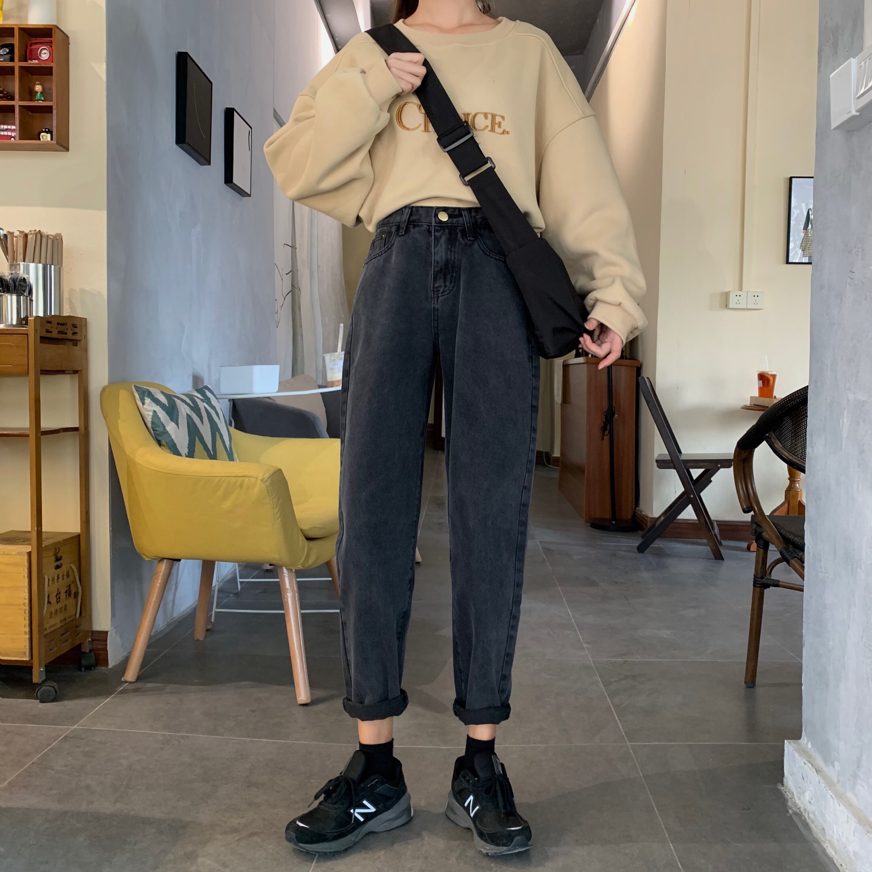 パンツレディース2020新しい秋と冬のハイウエストと薄いワイルドブラックレディースジーンズレディースストレートルーズワイドレッグ 1号婦人78955814465