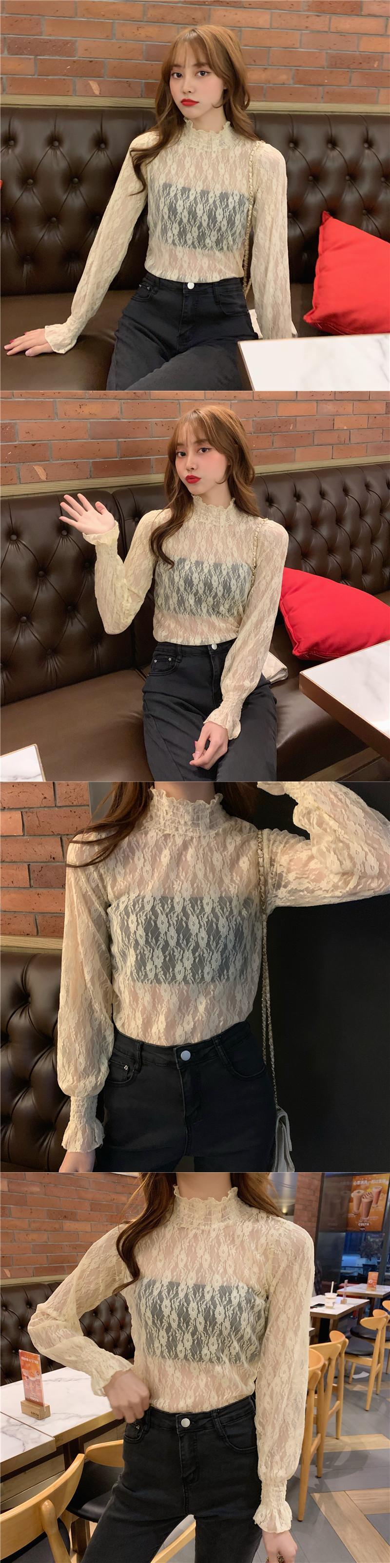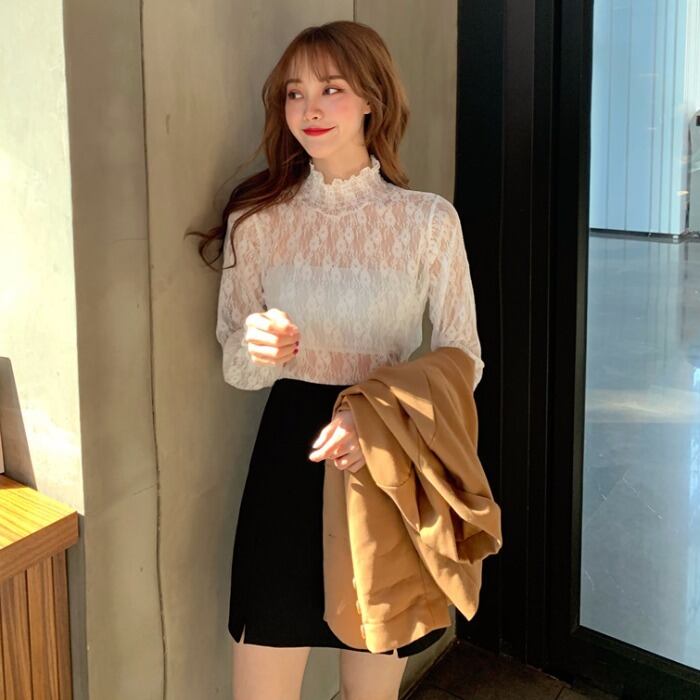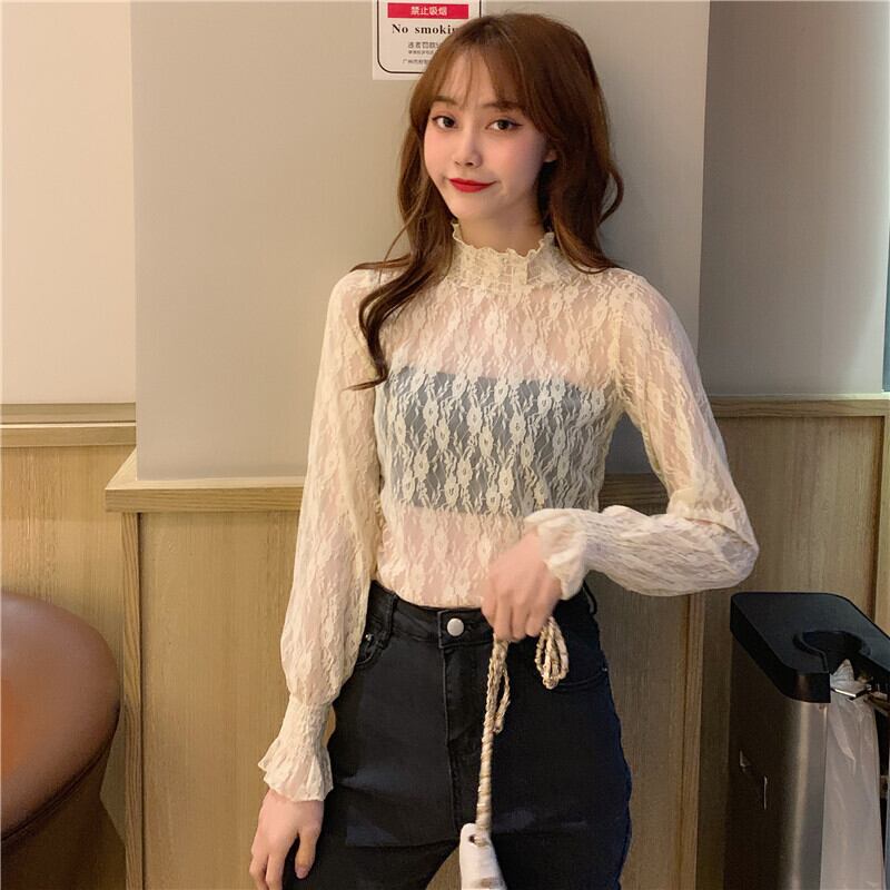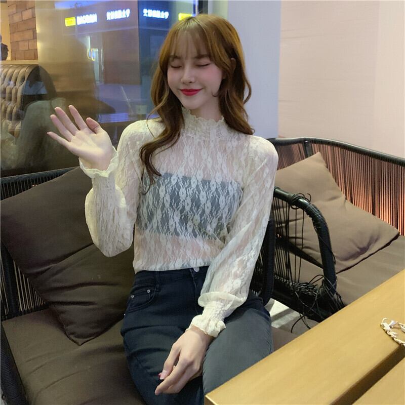 2020年秋冬新気質ベースのフェミニンなブラウス、ウエスタンハイネックフラワーメッシュレースシャツ 1号婦人41745995357