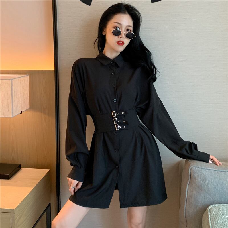 2020年初春レトロ香港フレーバールーズミドル丈コート長袖ブラックウエスタンスタイルシャツウエストトップ女性 1号婦人53919471371