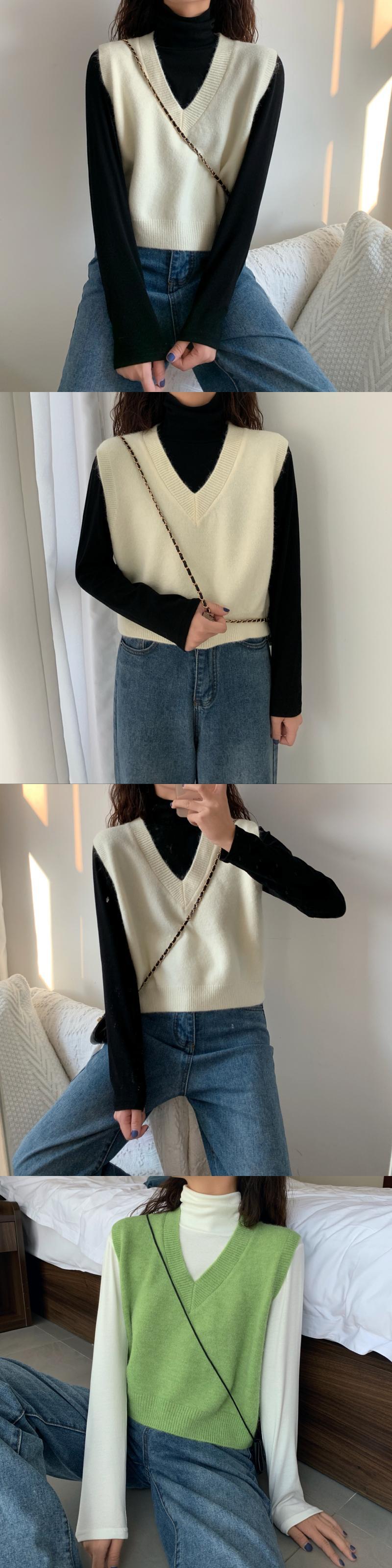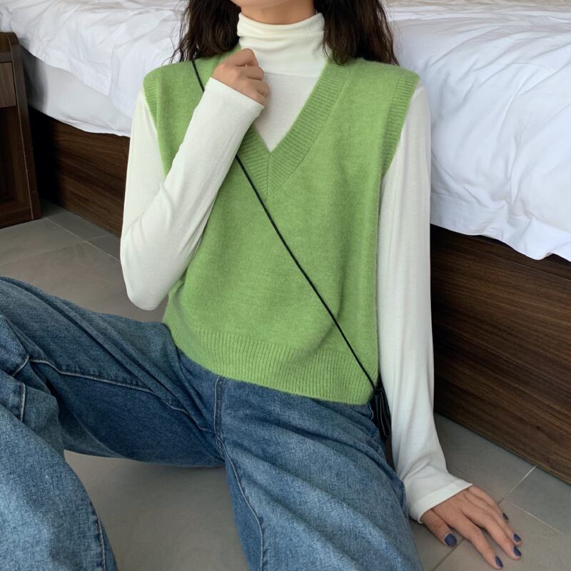 アウターウェアノースリーブセーターレディース2020初秋新作ニットベストベストネットレッド長袖ハイネックボトミングTシャツ 1号婦人60659969053