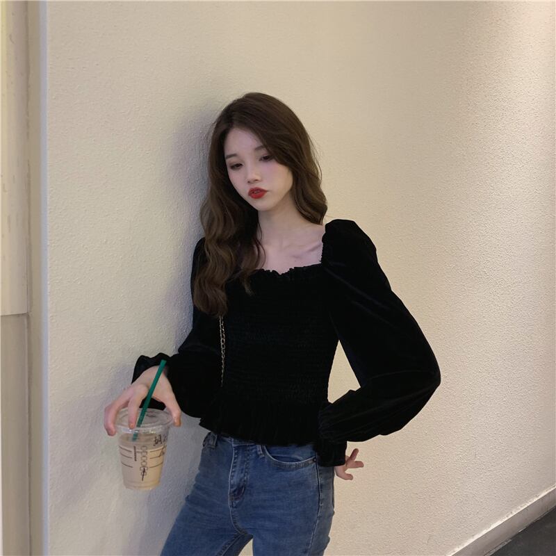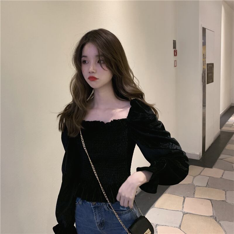 2020年初春新フランスレトロパレス露出鎖骨スリムトランペットスリーブデザインセンスニッチシャツトップ女性 1号婦人79263254195