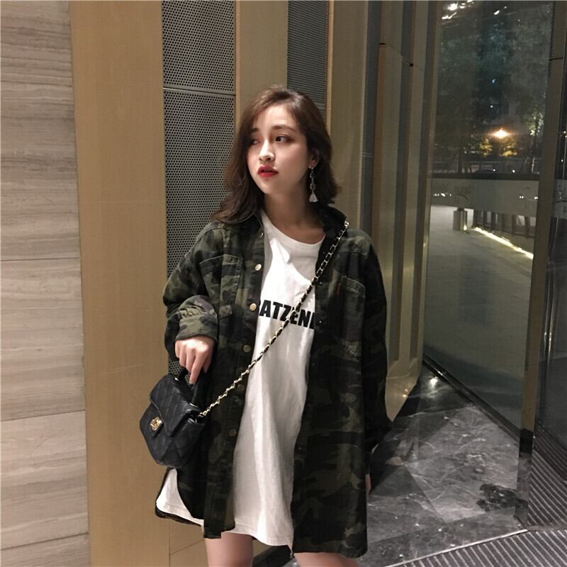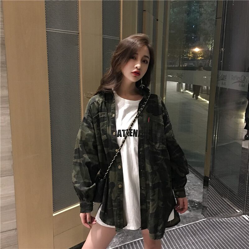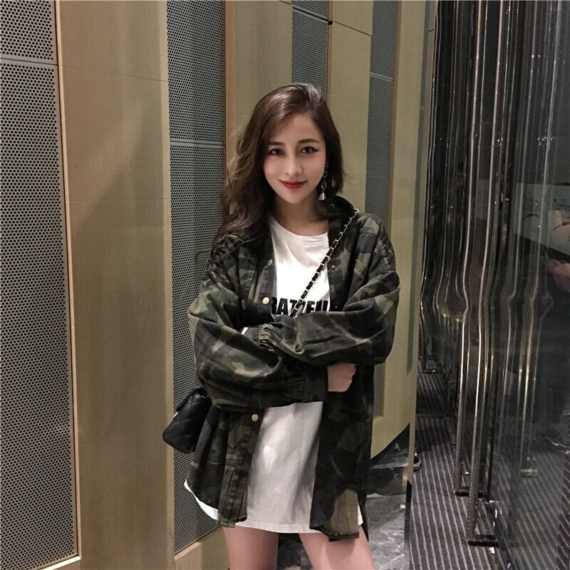 シャツ2020新しい春と秋の長袖の多目的な女性のシャツジャケットルーズカモフラージュデザインニッチトップ 1号婦人43123128867