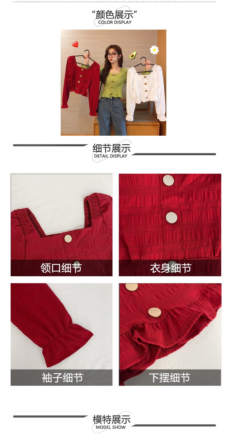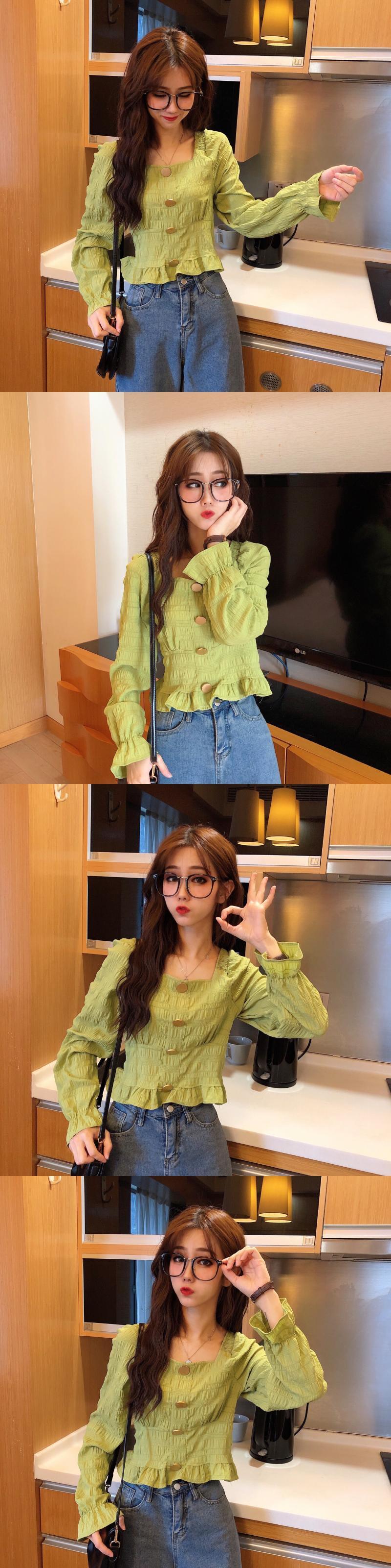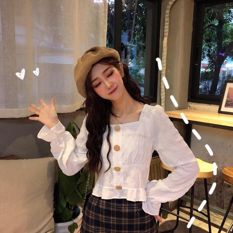 長袖シャツレディース2020春秋新作スタイルシックスクエアカラープリーツルーズ&シンショートオールマッチトップ 1号婦人42841991334