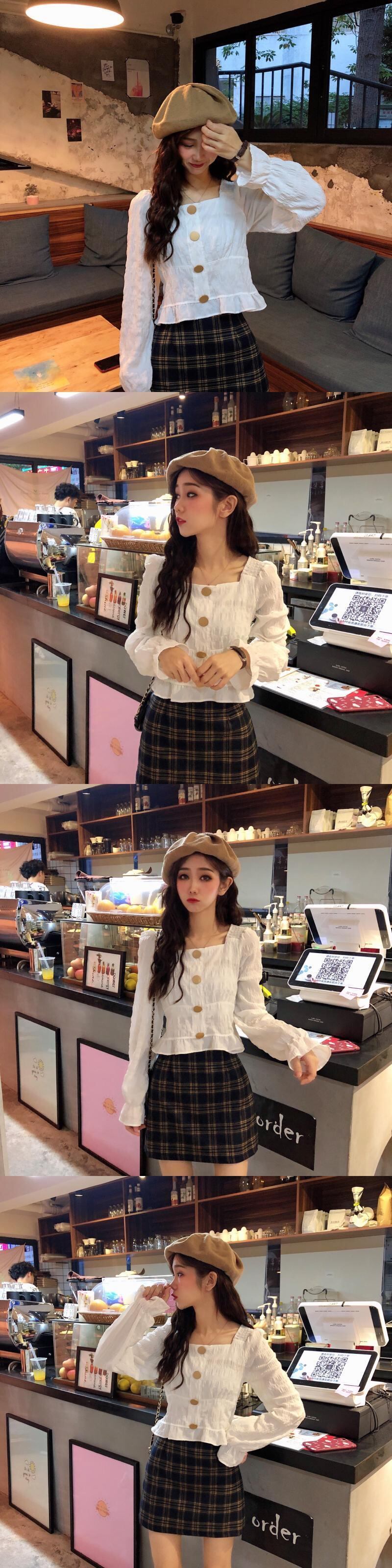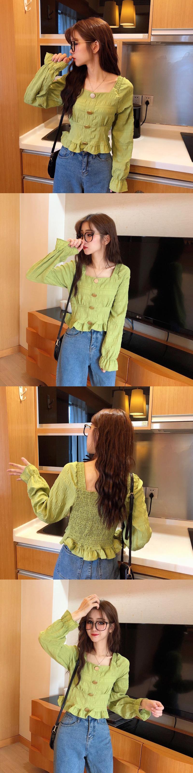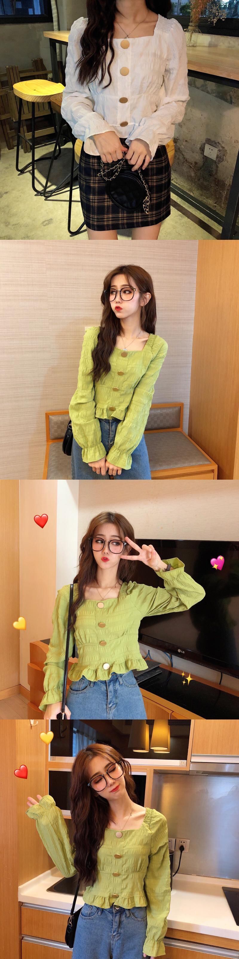 長袖シャツレディース2020春秋新作スタイルシックスクエアカラープリーツルーズ&シンショートオールマッチトップ 1号婦人42841991334
