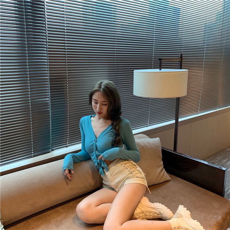 ニットボトミングシャツレディースショートスリムVネックトップ2020新春秋トレンド長袖カーディガン 1号婦人9185094992