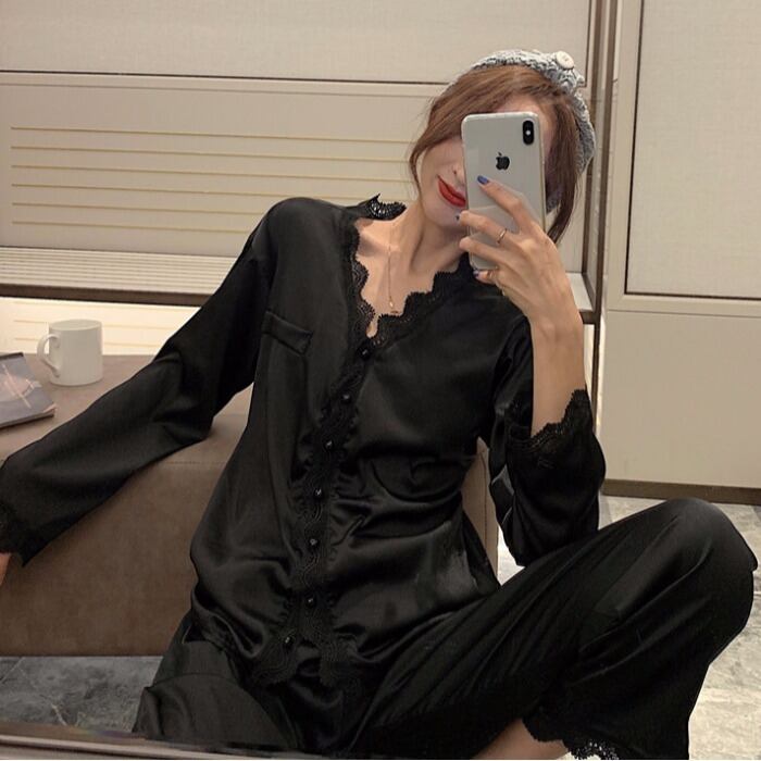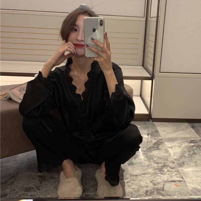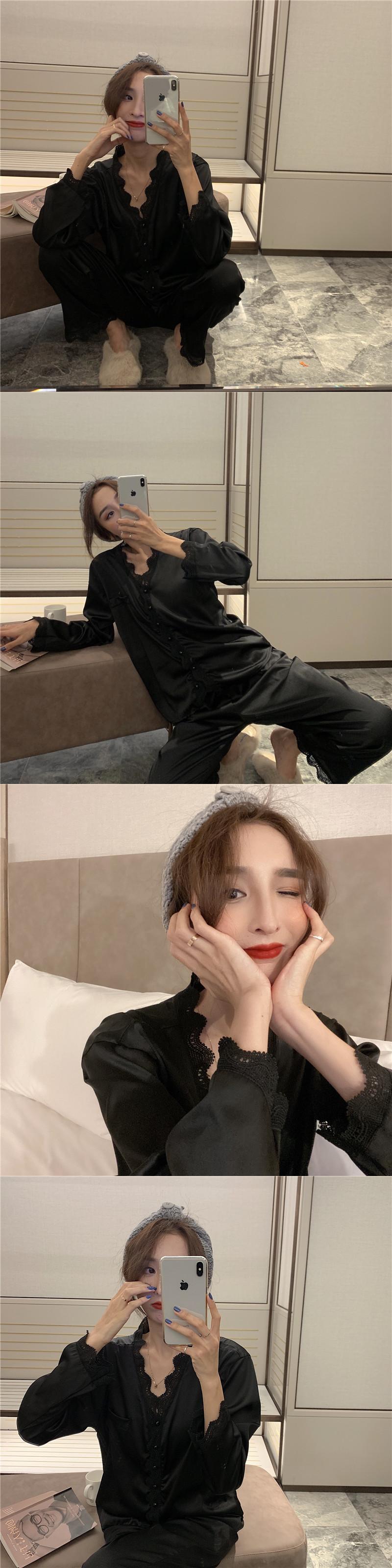 白い長袖パジャマ女性の2020年の新しい春と秋のレーススーツの家庭服セクシーなネットの外で着用することができます赤いスタイル 1号婦人4907918522