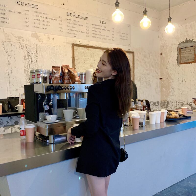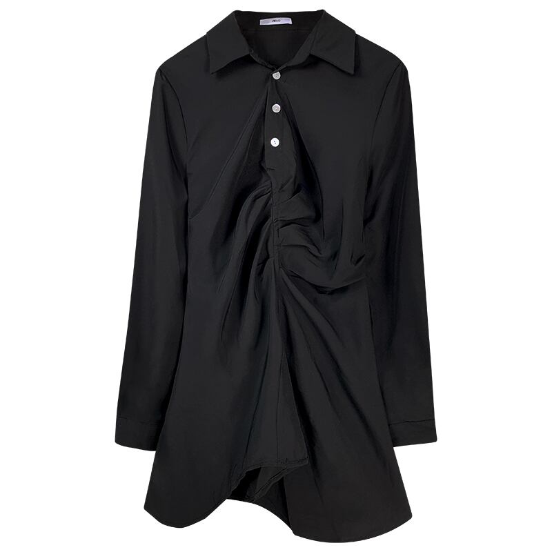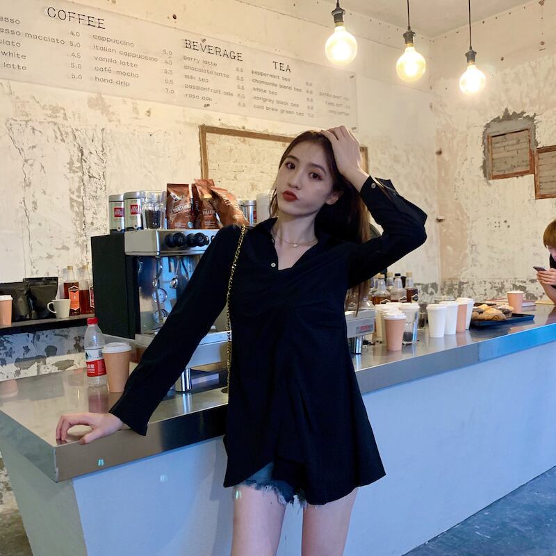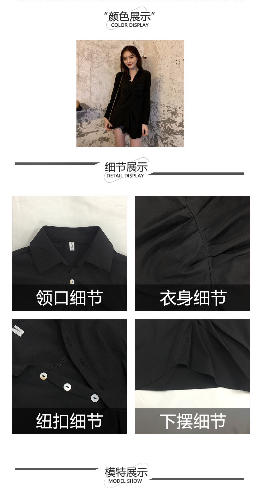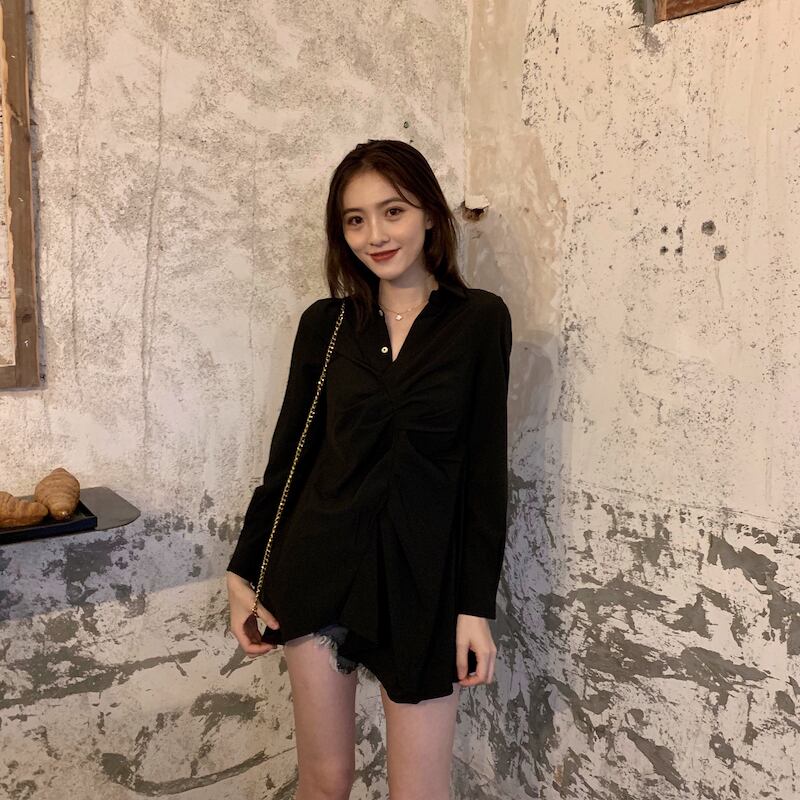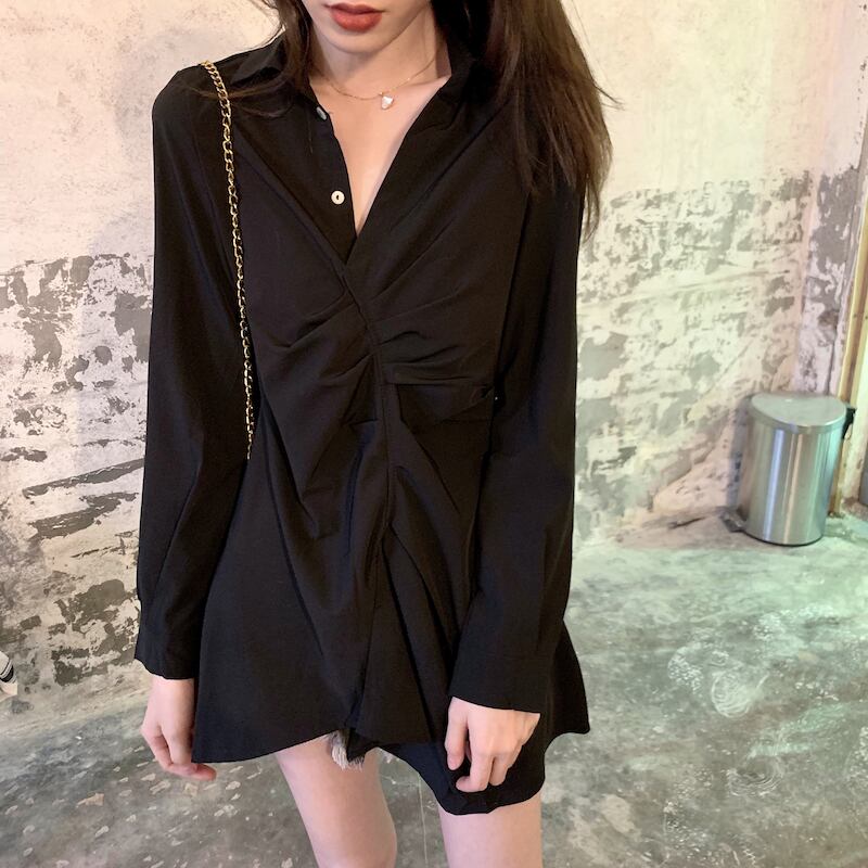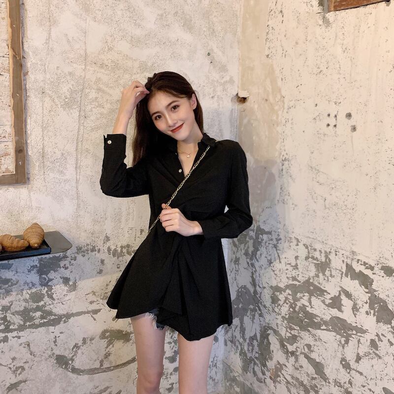 フレンチレトロニッチデザインセンス長袖イレギュラーシャツ黒ドレスウエストスリミングショートスカート女性 1号婦人75764202132