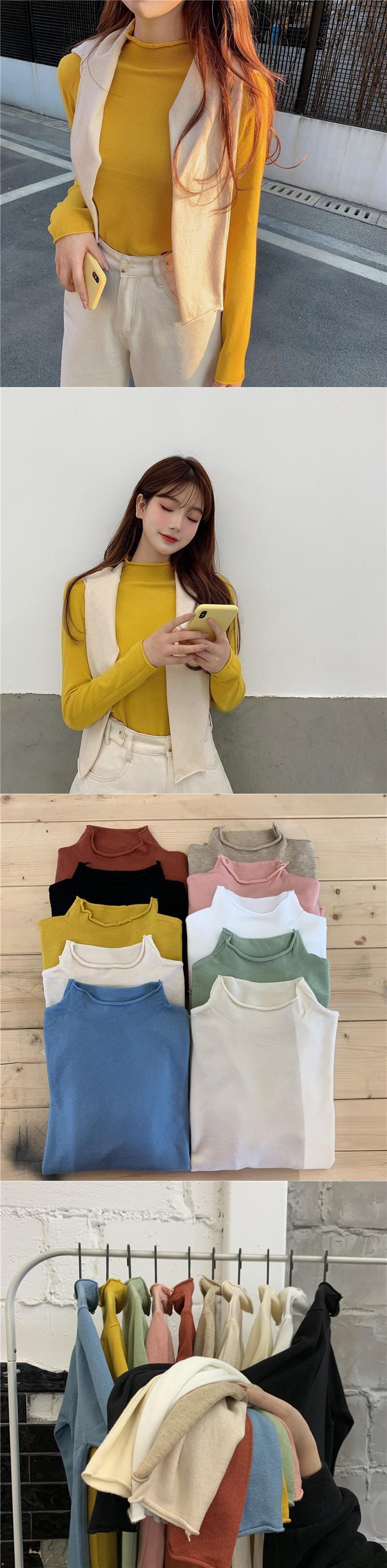 2020年秋新しい薄手のセーターオールマッチ長袖セーター女性秋冬ハーフハイネックスリムボトミングシャツ 1号婦人18427204783